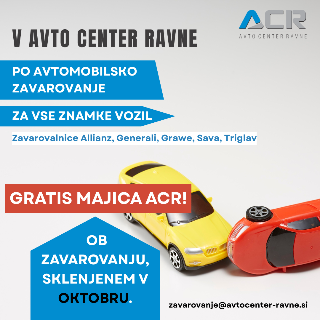 Obiščite jih v mesecu oktobru, na voljo so vam vsak delovni dan med 7. in 15. uro. Ob sklenitvi zavarovanja za vašega cestnega lepotca vam v tem mesecu podarijo majico ACR. Zato ne odlašajte, poskrbite za to, da bo vaš jekleni konjiček zavarovan in pripravljen na nove izzive, pri tem pa se prepustite strokovni ekipi Avto Centra Ravne.