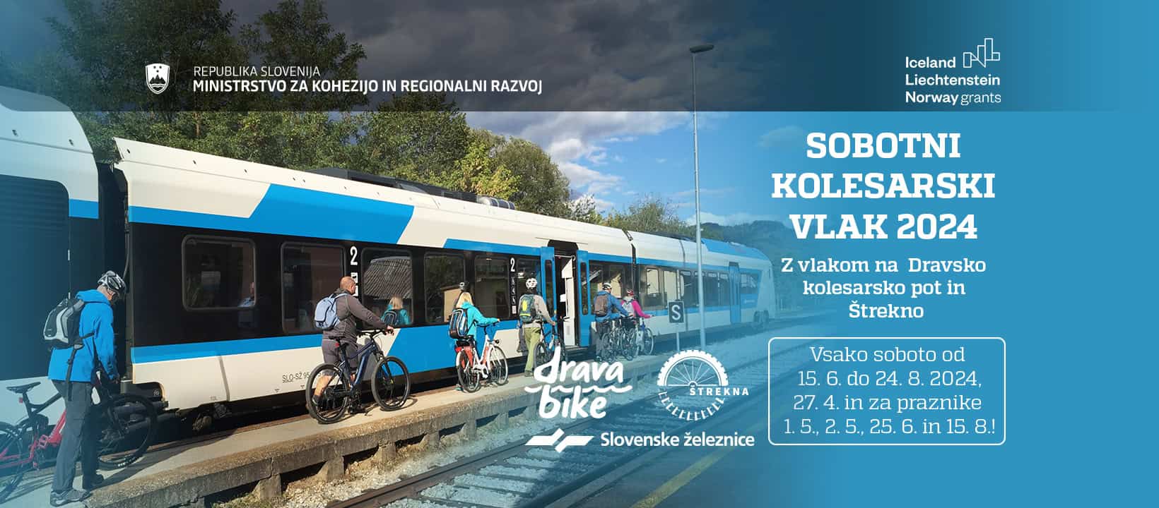 Sobotni kolesarski vlak na Koroški progi začenja redne sezonske vožnje, vlak pa bo vozil od danes, 15. junija in vse do 24. avgusta 2024. Prav tako bo vlak vozil na oba praznika, tako 25. junija, kot 15. avgusta 2024.