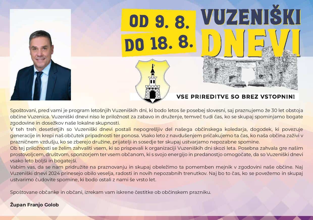 Podrobnejši PROGRAM VUZENIŠKIH DNEVOV najdete TUKAJ, o vsem dogajanju pa boste obveščeni tudi TUKAJ.