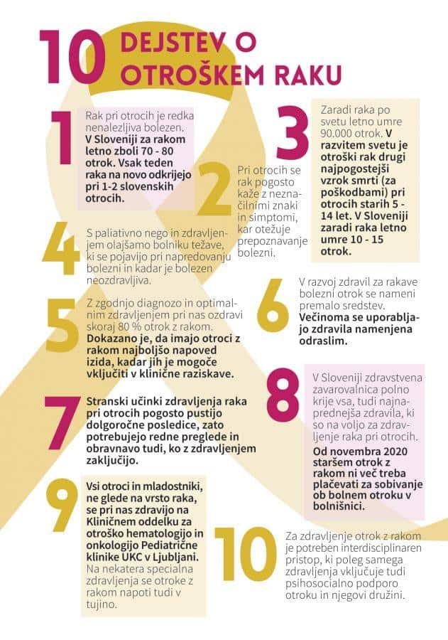 V Sloveniji za rakom zboli od 70 do 80 otrok na leto, vsak teden pa raka na novo odkrijejo pri enem ali dveh. V razvitem svetu je otroški rak drugi najpogostejši vzrok smrti, pri otrocih, starih od 5 do 14 let. V Sloveniji zaradi raka leto umre od 10 do 15 otrok.