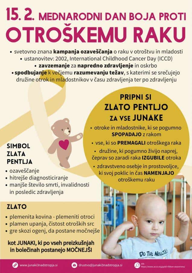 Junaki 3. nadstropja, društvo staršev otrok, zdravljenih na hemato-onkološkem oddelku želi v letu 2021 glas o mednarodnem dnevu boja proti otroškemu raku razširiti predvsem v šole in vrtce. Za njih so pripravili zlate pentlje, ki simbolizirajo ozaveščanje, hitrejše diagnosticiranje ter manjše število smrti, invalidnosti in posledic zdravljenja.
