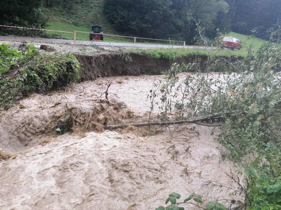 - V popoldanskih urah je deževje z močnimi nalivi zajelo občino Ravne na Koroškem. Gasilci PGD Kotlje na terenu preusmerjajo meteorno vodo, ki ogroža stanovanjske objekte in s pomočjo delovnih strojev čistijo zamašene propuste v Podgori.