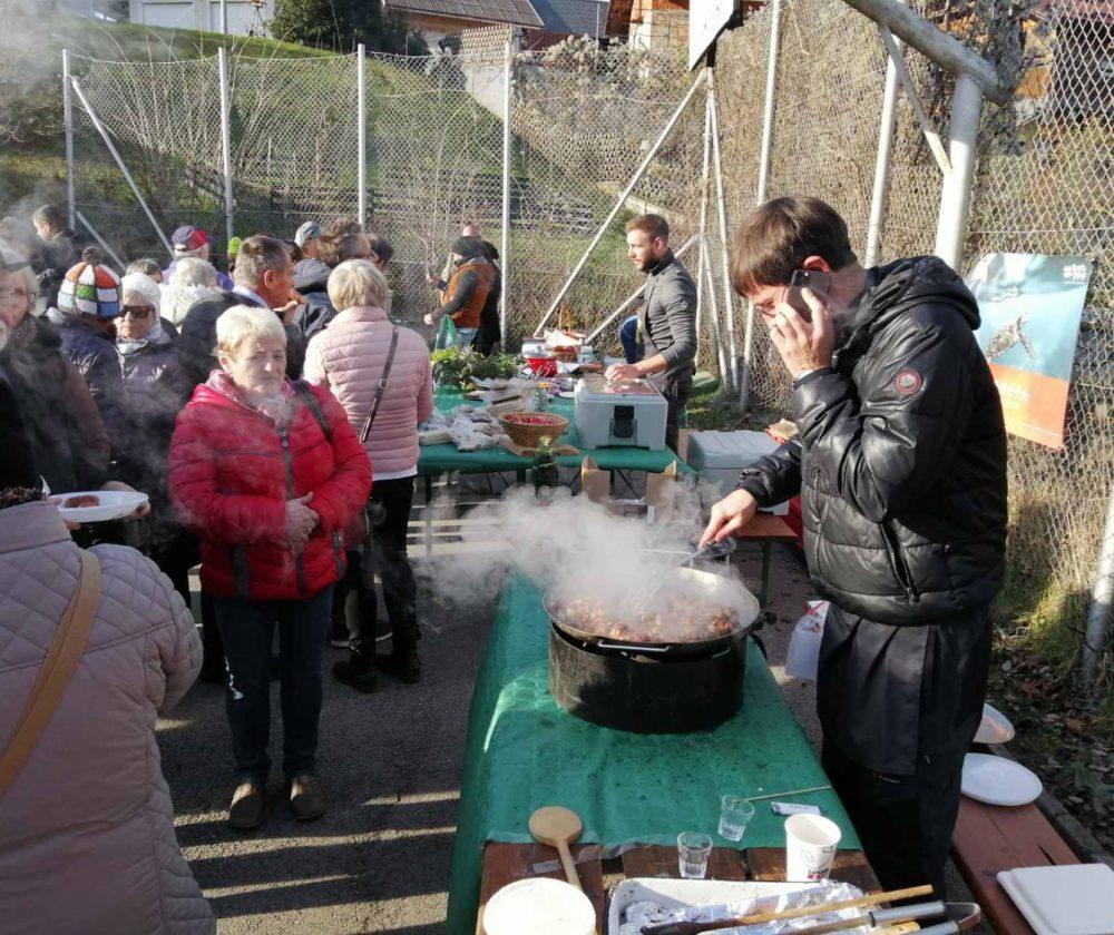 Prebivalci Leš in tudi drugih okoliških krajev so včerajšnjo nedeljo izkoristili za druženje in dobro hrano ter se na kosilo odpravili na prvi Kulinarični festival kolin in tolstih grumpov. Na festivalu niso manjkali sočni tolsti grumpi, slasten mežerli s krompirjevo solato, kisla župa, omamne pečenice in ostale tradicionalne jedi, ki so jih v času kolin pripravljali naši dedki in babice, pradedki in prababice, poskrbeli pa so tudi za vegane. Tisti, ki ga še niso, so lahko na festivalu poizkusili znova in znova nagrajeni kruh Marjete Ročnik, naše kmetice leta, in pogačo izpod rok Danice Miler.