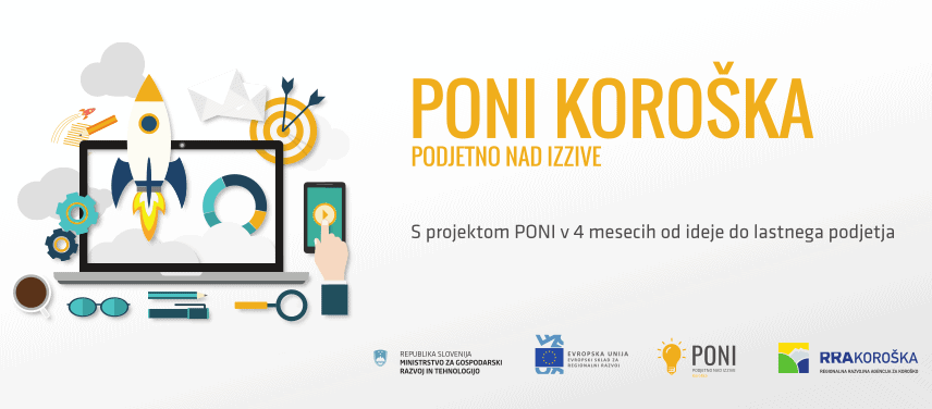 Projekt PONI RRA Koroška je model podjetniškega usposabljanja, v okviru katerega potencialni podjetniki v 4 mesecih razvijejo in realizirajo svojo podjetniško idejo. To se doseže skozi celostni program podjetniških usposabljanj, skozi mentorstvo in nudenje vsestranske pomoči udeležencem pri uresničevanju njihovih poslovnih idej. Posebnost projekta predstavlja zaposlitev udeležencev za čas trajanja programa na RRA Koroška, kar udeležencem omogoča ne le finančno podporo pri razvoju njihovih poslovnih idej, ampak tudi čas, ki ga lahko udeleženci namenijo izključno pridobivanju novih znanj, izkušenj in pripravi na vstop na samostojno podjetniško pot.
