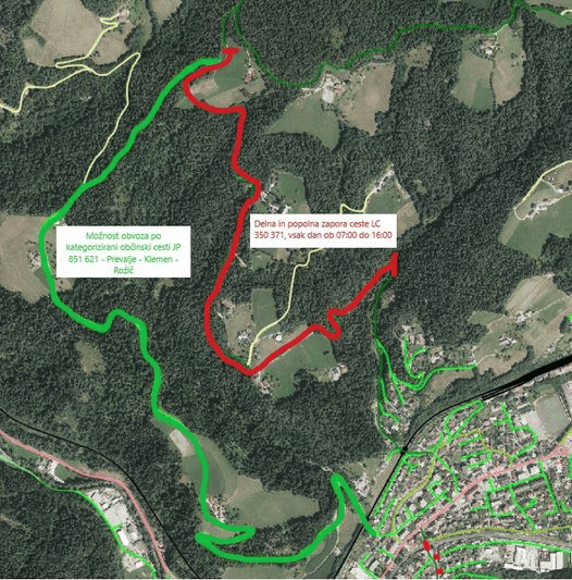 Občina Prevalje obvešča vse uporabnike ceste, da bo zaradi del na cesti LC 350 371 – cesta Prevalje – Šaver – strojna, odsek Prevalje – križišče Brinjeva gora potekala popolna zapora ceste.
