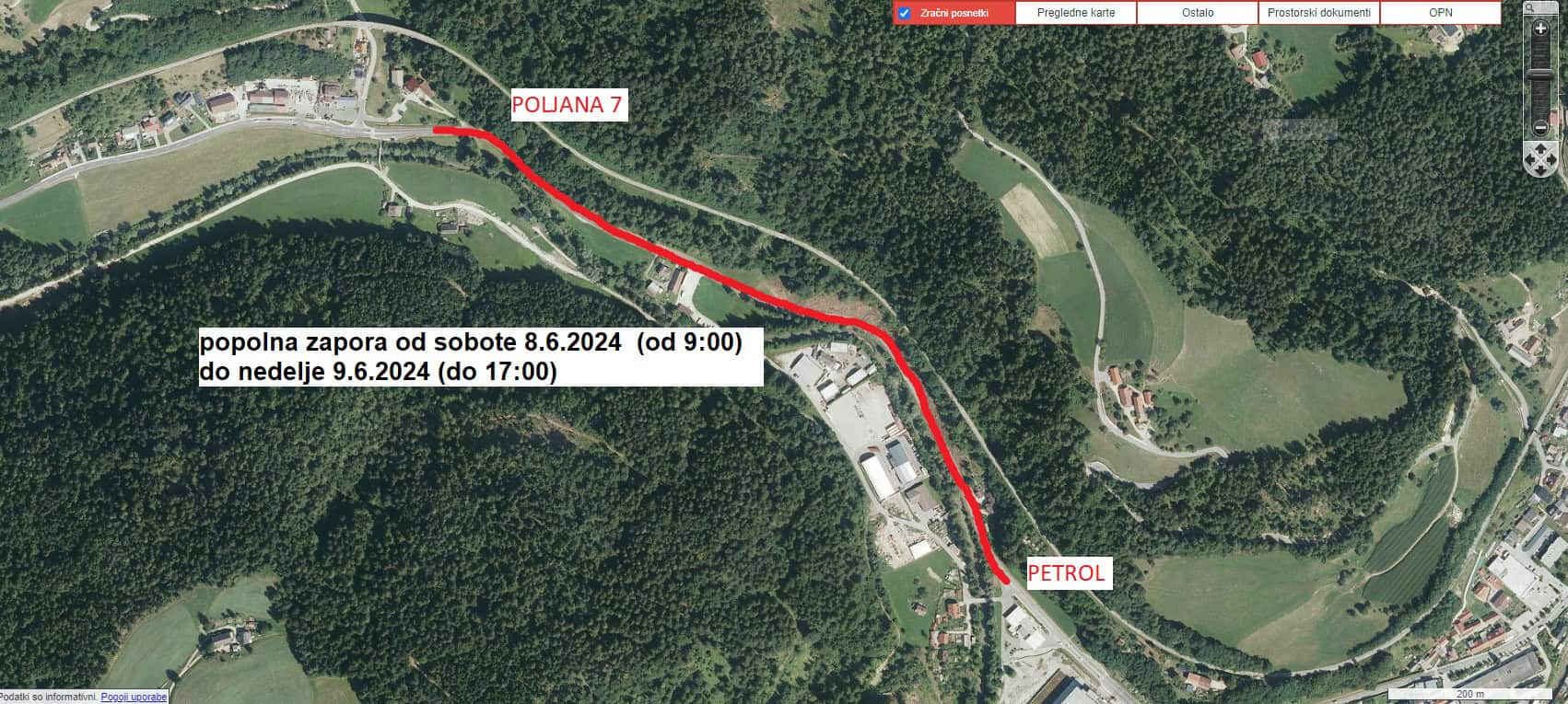Cesta bo popolnoma zaprta od sobote, 8. junija, od 9. ure in vse do nedelje, 9. junija, do 17. ure.