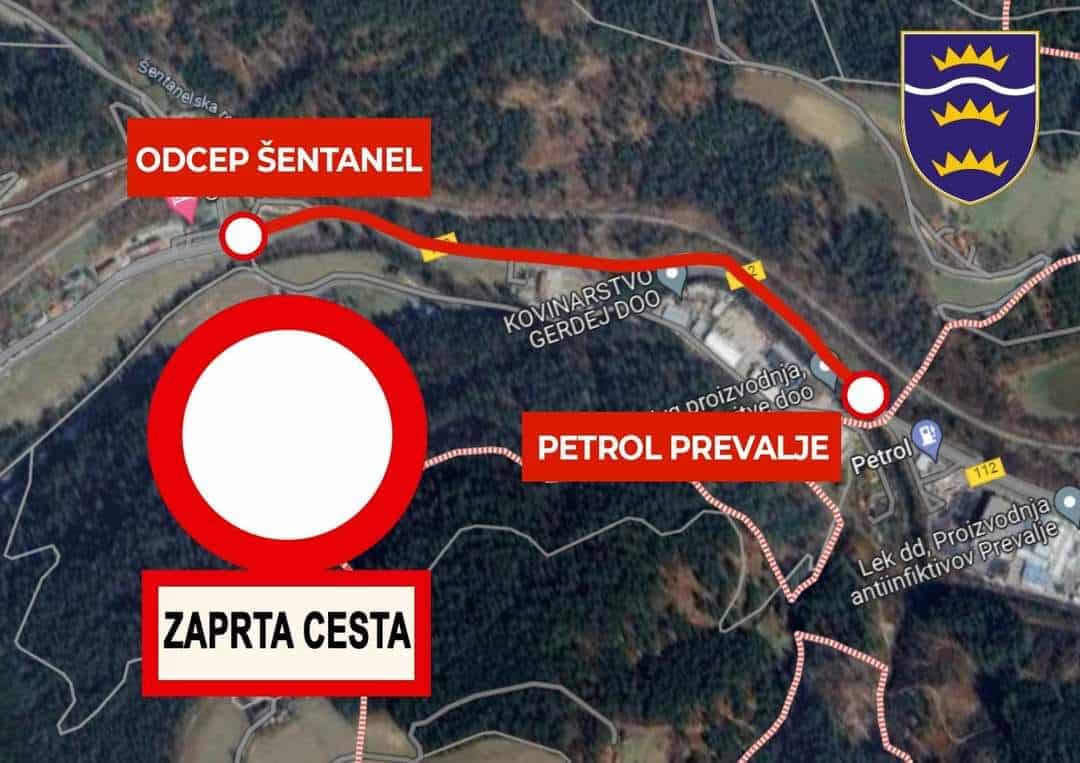 Občina Prevalje obvešča vse uporabnike ceste, da bo popolna zapora glavne ceste od odcepa za Šentanel do Petrola Prevalje.