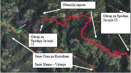 Popolna zapora bo na lokalni cesti LC 052021 Cesta Rezman - Javorje - Ciganija - Sv. Vid od odcepa za stanovanjsko hišo Spodnje Javorje 25 (kmetija Kavšak) do odcepa za stanovanjsko hišo Javorje 22 (kmetija Pik) proti centru Črne na Koroškem