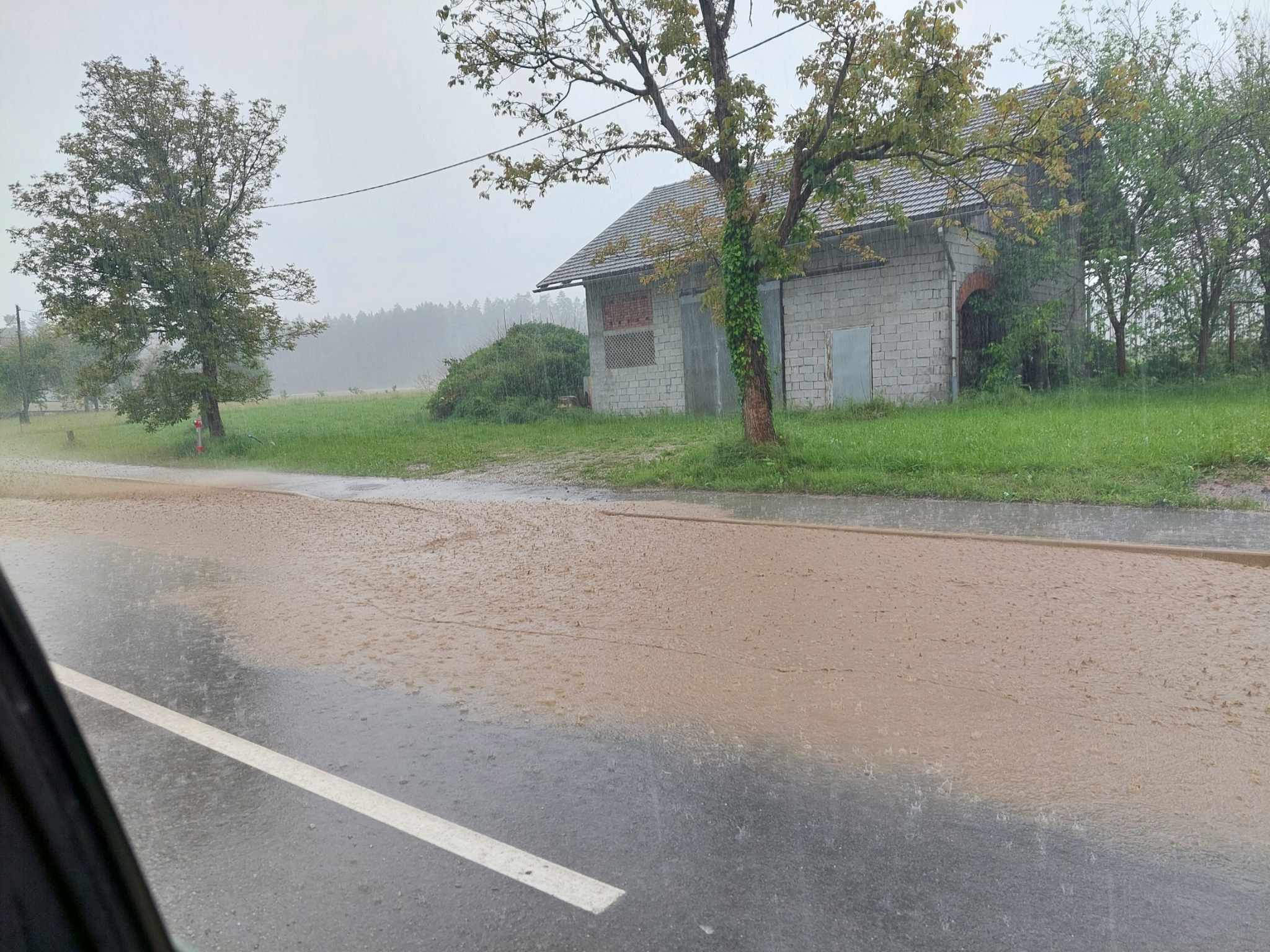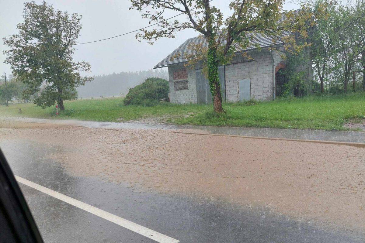 Prav tako je velika količina vode na cestišču v Podgorju.