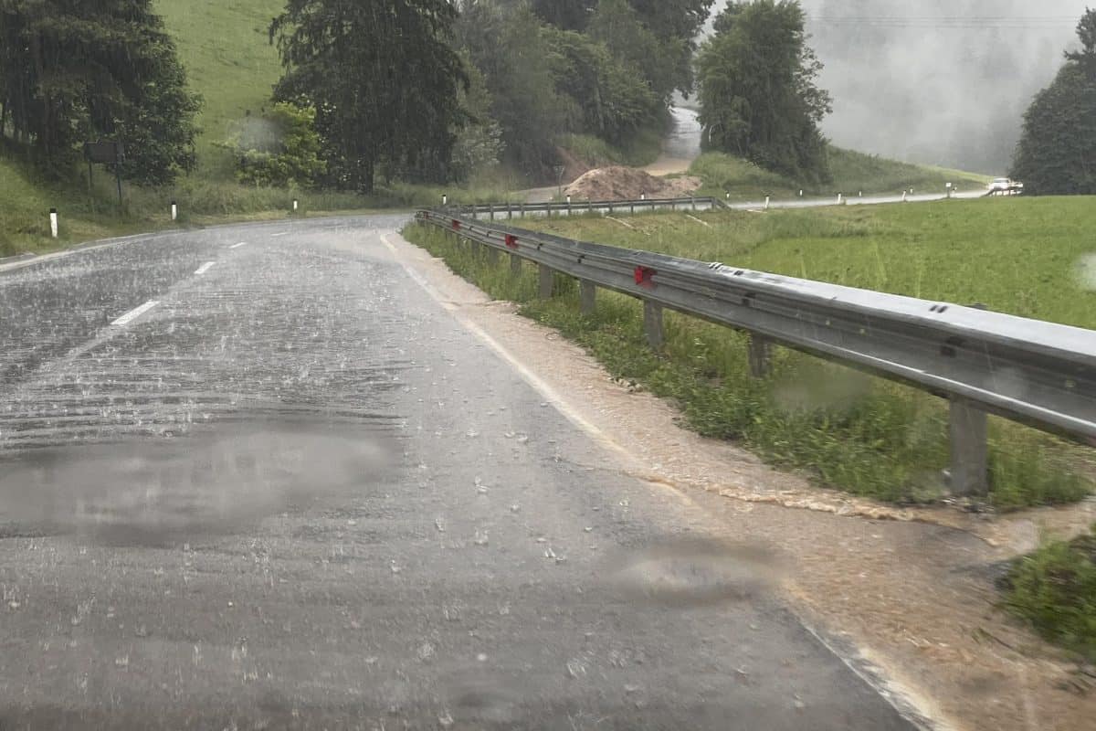 Zaradi močnega naliva, ki je v zadnji uri zajel celotno Koroško, je nekatere ceste že zalila voda.