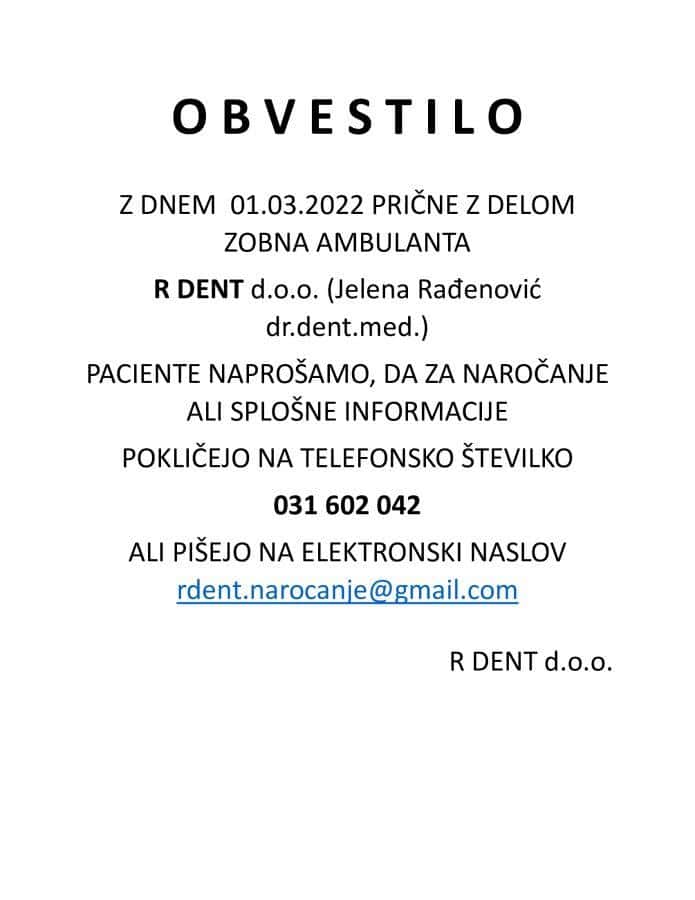 Za naročanje ali več informacij lahko pokličete na telefonsko številko: 031 602 042 ali pišete na elektronski naslov: rdent.narocanje@gmail.com.