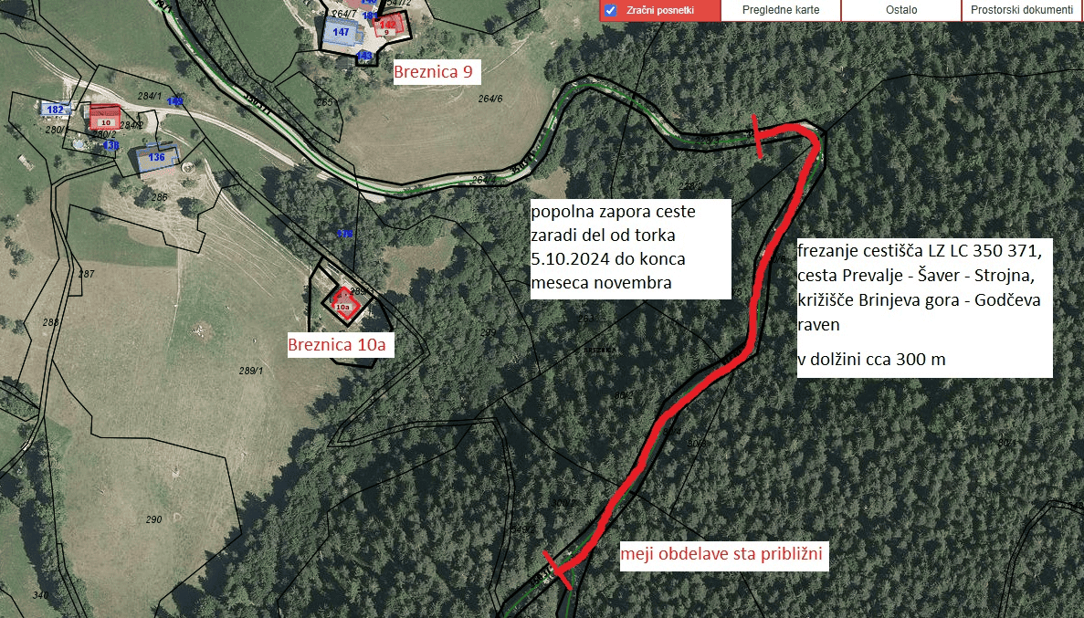 Gradbeno podjetje TOP - KOP d.o.o. iz Slovenj Gradca obvešča, da bo zaradi frezanja obstoječega asfalta vzpostavljena popolna zapora ceste na odseku Prevalje–Šaver–Strojna. Zapora bo postavljena od torka, 5. novembra, in bo trajala predvidoma do konca meseca novembra.