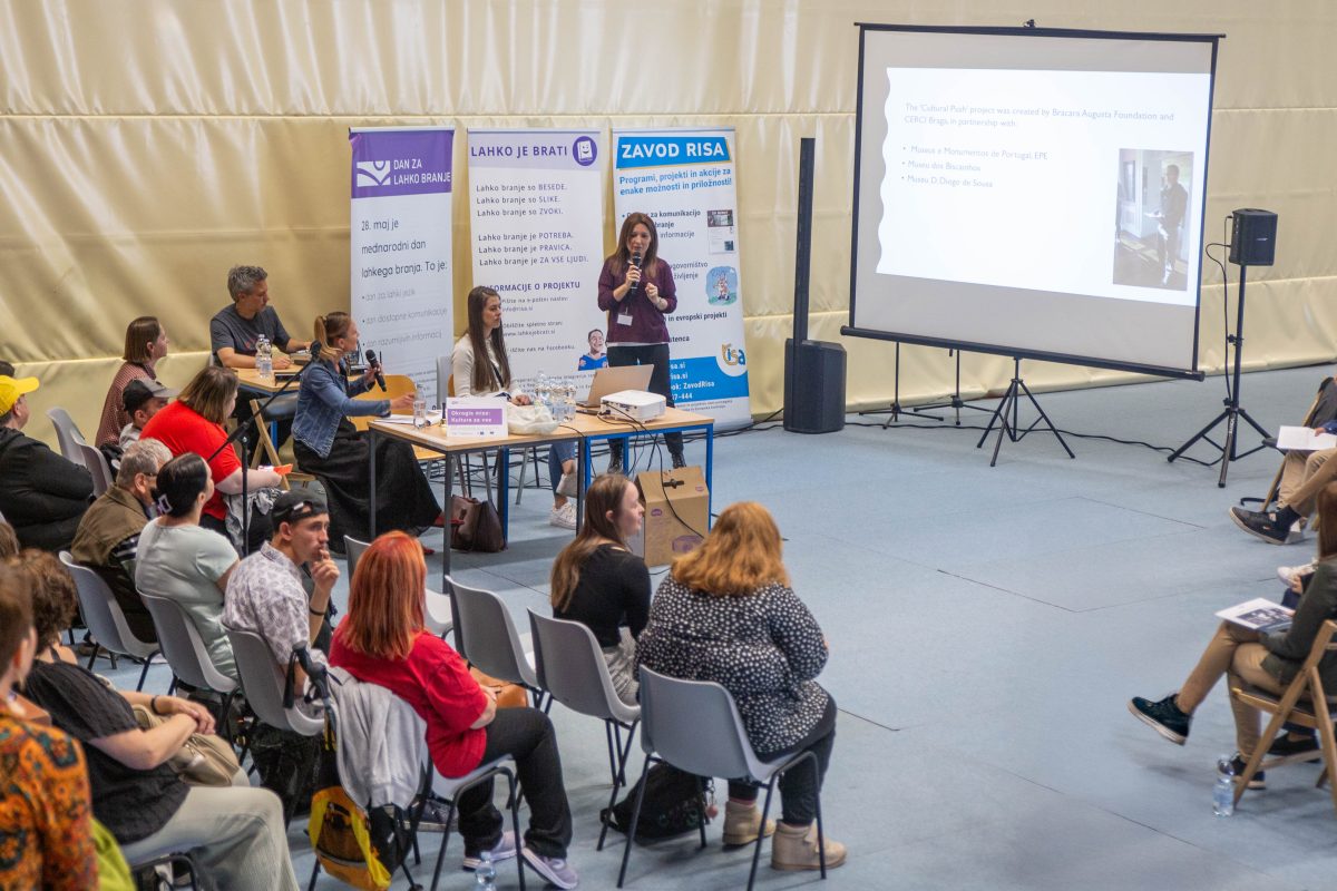 Na okrogli mizi »Kultura za vse« so sodelovali predstavniki Muzeja novejše in sodobne zgodovine Slovenije, Narodne galerije, Koroškega pokrajinskega muzeja, Koroške galerije likovnih umetnosti ter portugalske organizacije CERCI Braga. Pogovor je osvetlil, kako kulturne ustanove vključujejo osebe z oviranostmi ter ustvarjajo razstave in gradiva v lahkem jeziku. Poleg okrogle mize so se udeleženci udeležili tudi treh delavnic: Kako rišem lahko branje, Senzorno branje in Novice s tretje police. Delavnice so omogočile praktičen vpogled v ustvarjanje dostopnih vsebin v lahkem branju.