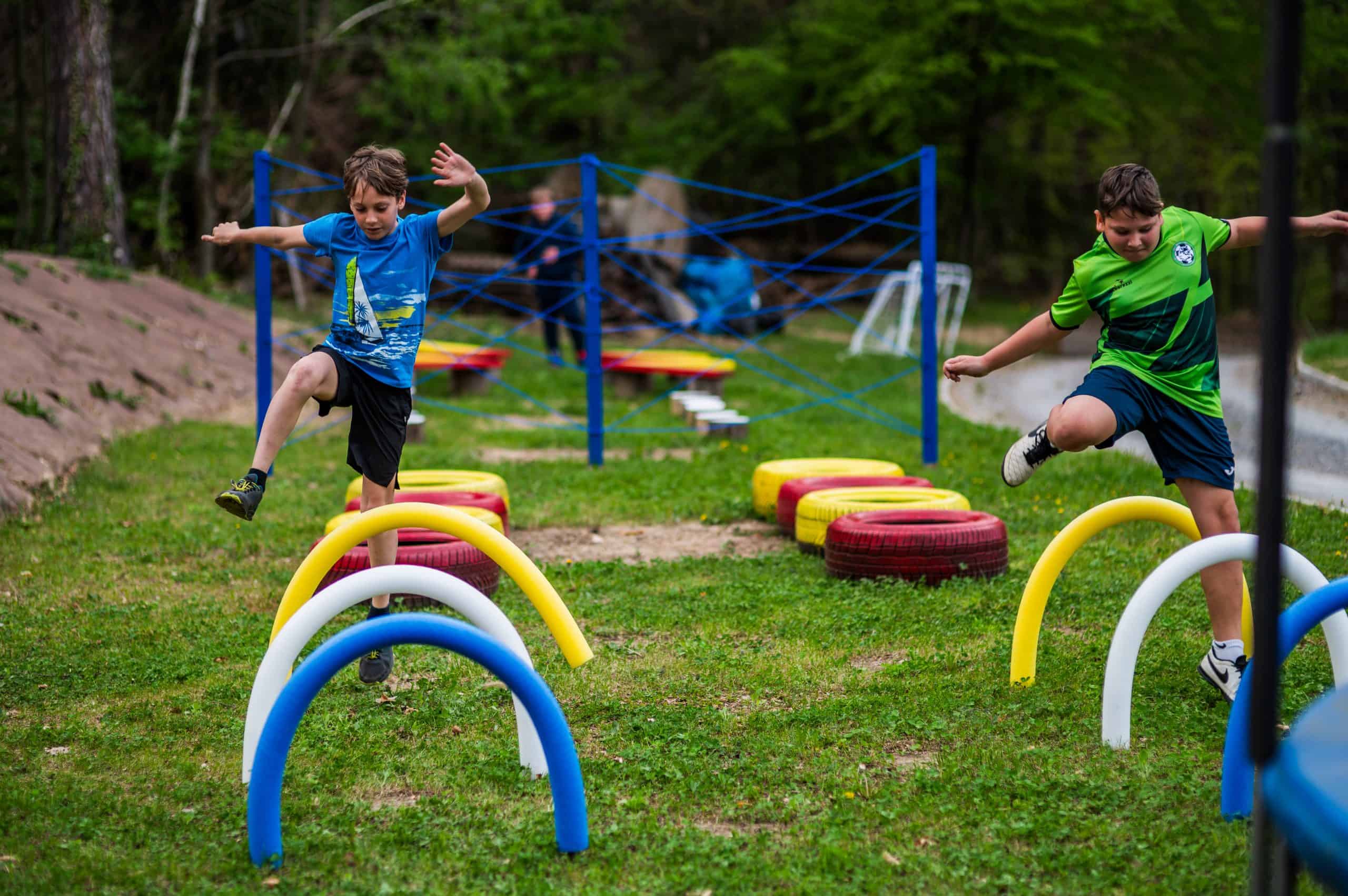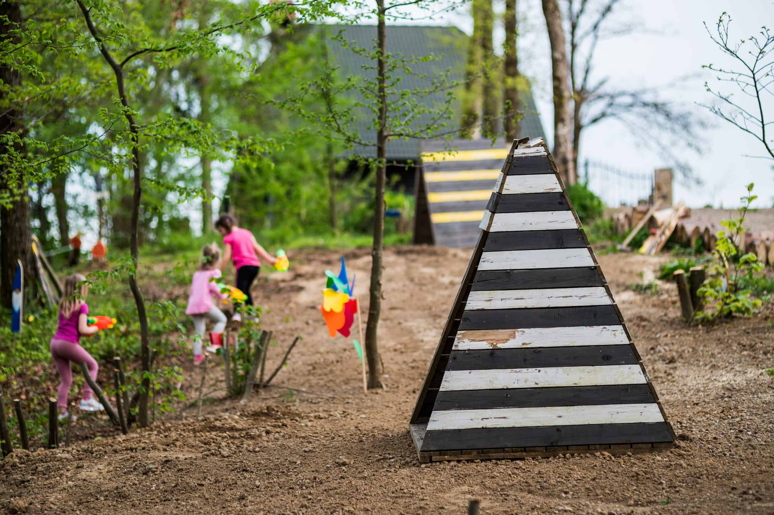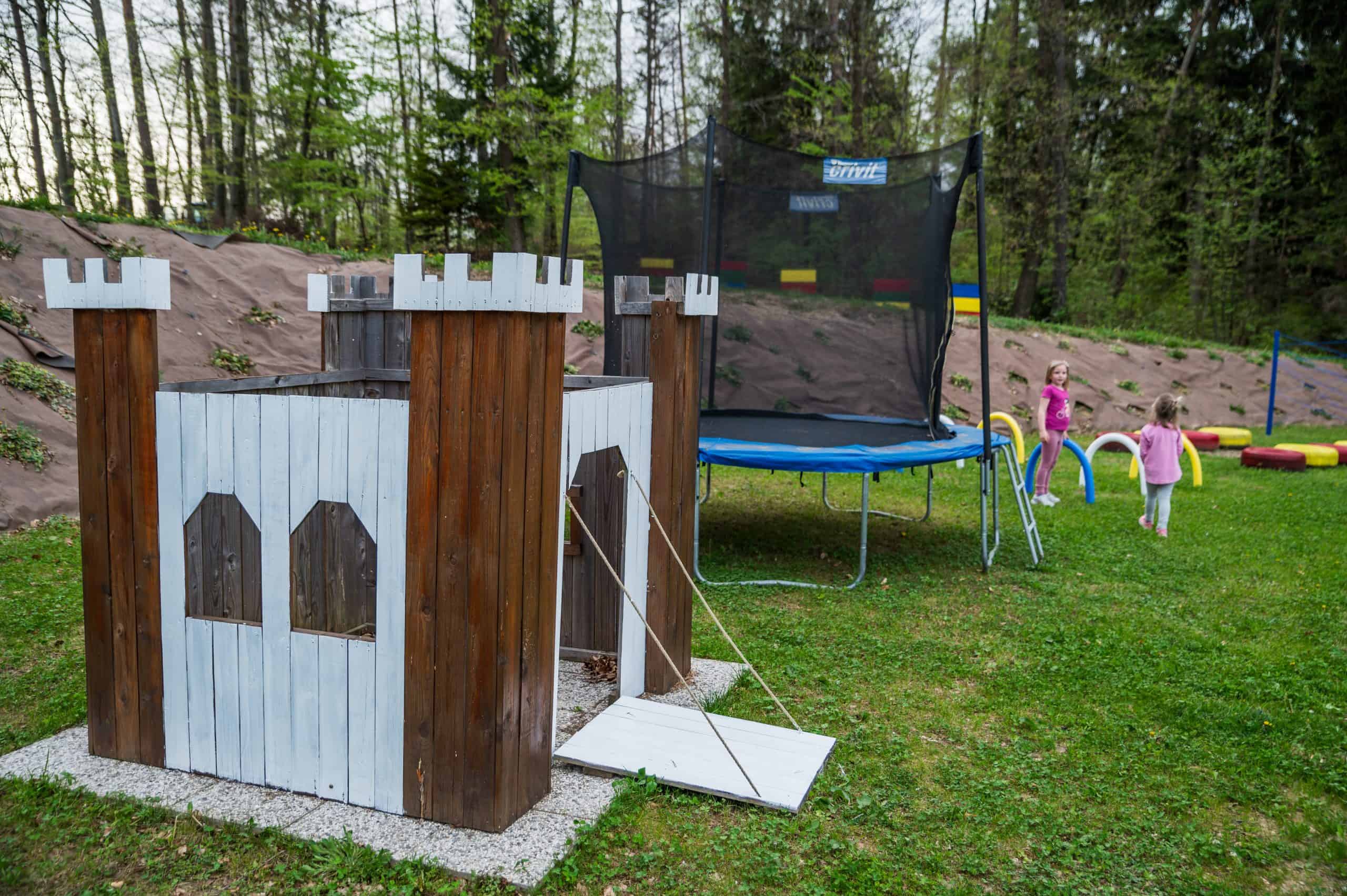 Na voljo bodo imeli poligon, kjer bodo lahko preizkusili svoje spretnosti. Podali se bodo na lov za skritim zakladom in se preizkusili v streljanju na tarče. V vročih dnevih pa se bodo lahko ohladili z vodnimi pištolami. V Deželi zabave jih čaka tudi igrišče za nogomet, odbojko, kroket, badminton in trampolini. Lahko se bodo igrali z velikimi dominami, risali, slikali, vrteli hulahop obroče, podirali keglje in počeli še veliko zabavnih reči.