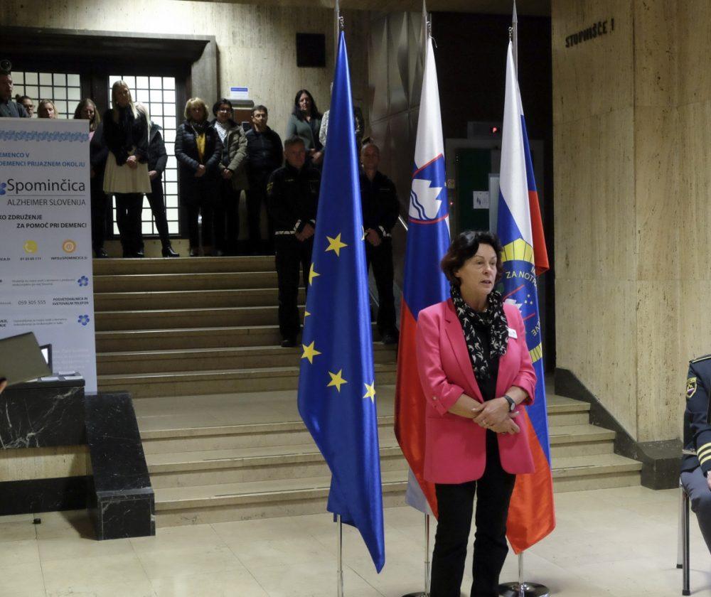V nadaljevanju je izpostavila pomen demenci prijaznih točk, kjer svojcem in bolnikom lahko ponudijo pomoč in ustrezne informacije. Zaradi narave bolezni pa je po besedah predsednice zelo pomembno, da njene znake prepoznajo tudi policisti. V zaključku je poudarila, kako pomembno je poznavanje vseh dejstev o tej bolezni, da lahko s skupnimi močmi rešujemo težave bolnikov in jih vključujemo v družbo.
