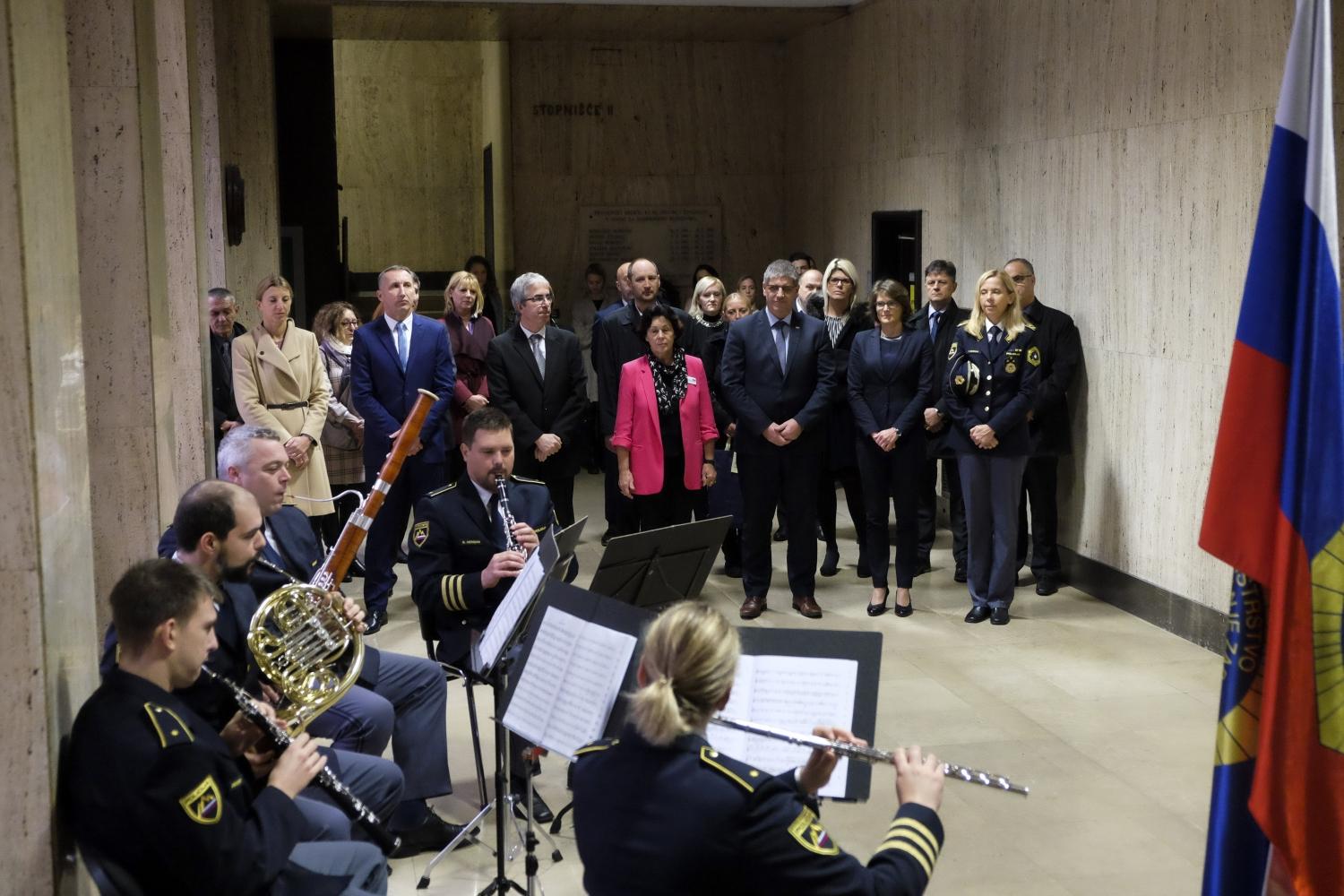 Zbrane je nagovoril tudi minister za notranje zadeve Boštjan Poklukar, ki je uvodoma izrazil veliko zadovoljstvo ob odprtju prve demenci prijazne točke v našem ministrstvu. Ministrstvo za notranje zadeve aktivno sodeluje v vladnem projektu Strategije dolgožive družbe in je nosilec dveh vsebinskih področij - Preprečevanje starostne diskriminacije in Osebna varnost starejših. "Demenca je bolezen, ki je vse pogosteje prisotna v naši družbi in lahko prizadene kogarkoli izmed nas. Zato je pomembno, da se je zavedamo vsi in se o njej pogovarjamo na glas," je dejal minister.