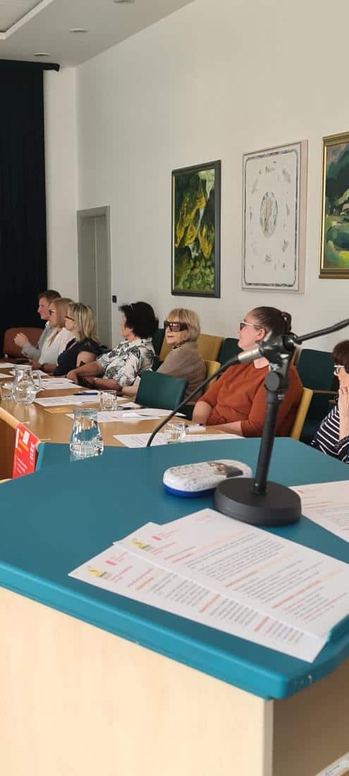 V sejni sobi Občine Ravne na Koroškem je potekalo srečanje s predavanji, ki ga je kot tematski koordinator Tednov vseživljenjskega učenja 2023 organiziralo podjetje Smeri d.o.o. na temo »Starajoča se družba in medgeneracijsko povezovanje«.