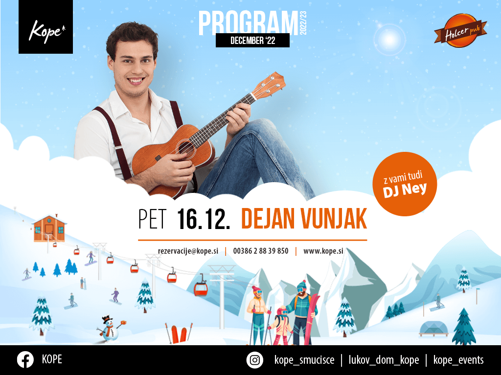 Rezerviraj si tudi najugodnejši paket SKI openinga: rezervacije@kope.si / 386 (0) 2 88 39 850 in preveri ostalo dogajanje ter ponudbo TUKAJ.