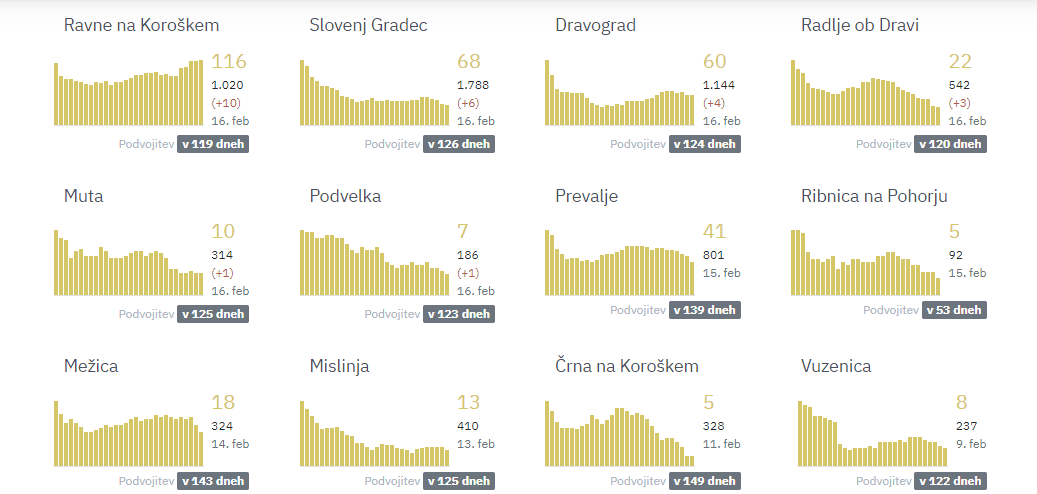 Maja Bratuša je na današnji vladni novinarski konferenci pojasnila, da med občinami izstopajo Celje s 34 okužbami, Cerknica s 14, Domžale z 22, Koper s 66, Škofljica z 20 in Trebnje s 16 okužbami. V Ljubljani so jih odkrili 150, v Mariboru pa 51.