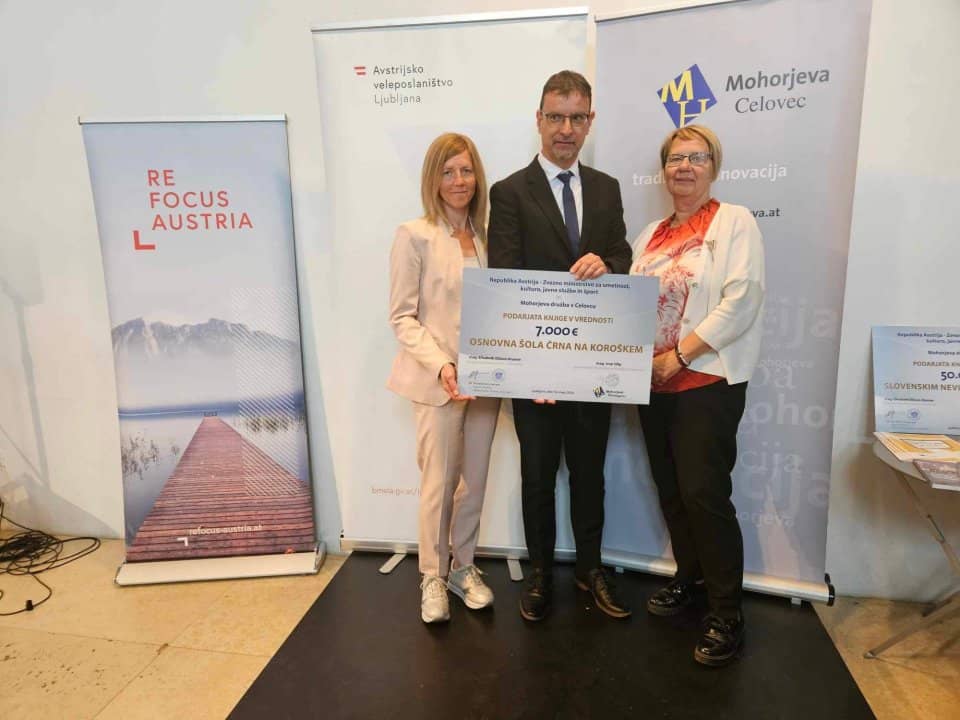 Avstrijska veleposlanica v Sloveniji, mag. Elisabeth Ellison-Kramer, in predsednik Mohorjeve družbe v Celovcu, msgr. mag. Ivan Olip sta, 14. maja 2024, v Mestnem muzeju v Ljubljani sedmim neprofitnim, socialnim, dobrodelnim in izobraževalnim ustanovam v Sloveniji ter Združenju/Associazione Don Mario Cernet (Italija) podarila knjige v skupni vrednosti 50.000 evrov.