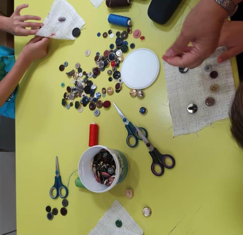 Zanimiv in hkrati zelo poučen je bil torek, ko so preizkusili svoje ročne spretnosti v odevanju niti v šivanko in pritrjevanju gumbov (beri šivanju) na blago ob pomoči mojstrice šivanja Dragice Cizerl. Dragica, Marija Tratnik in Danijela Ring so z njimi pripravljale tudi okusno, sadno, predvsem pa zelo osvežilno solato. Mali kuharski mojstri, s čisto pravimi kuharskimi kapami, so pri tem zelo uživali in z veseljem pojedli zdravo malico.
