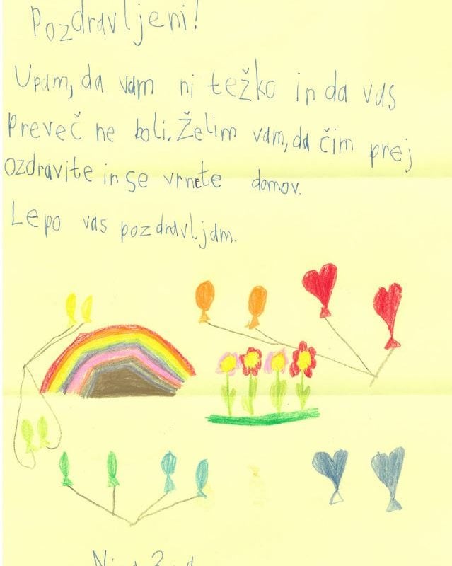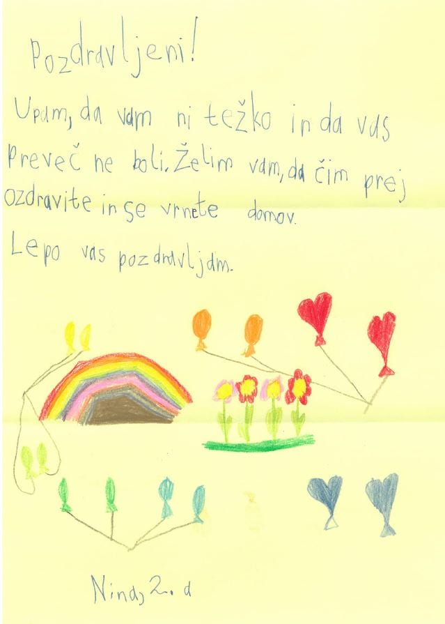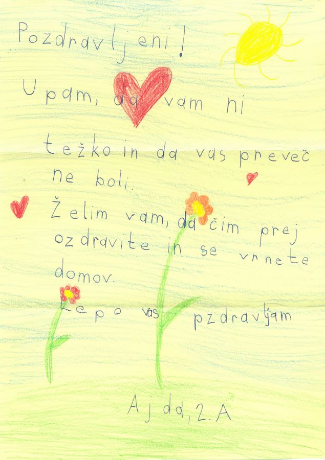 V Splošni bolnišnici Slovenj Gradec so se iskreno razveselili pisem, ki so jih za njihove bolnike pisali učenci Osnovne šole Šentjanž pri Dravogradu.