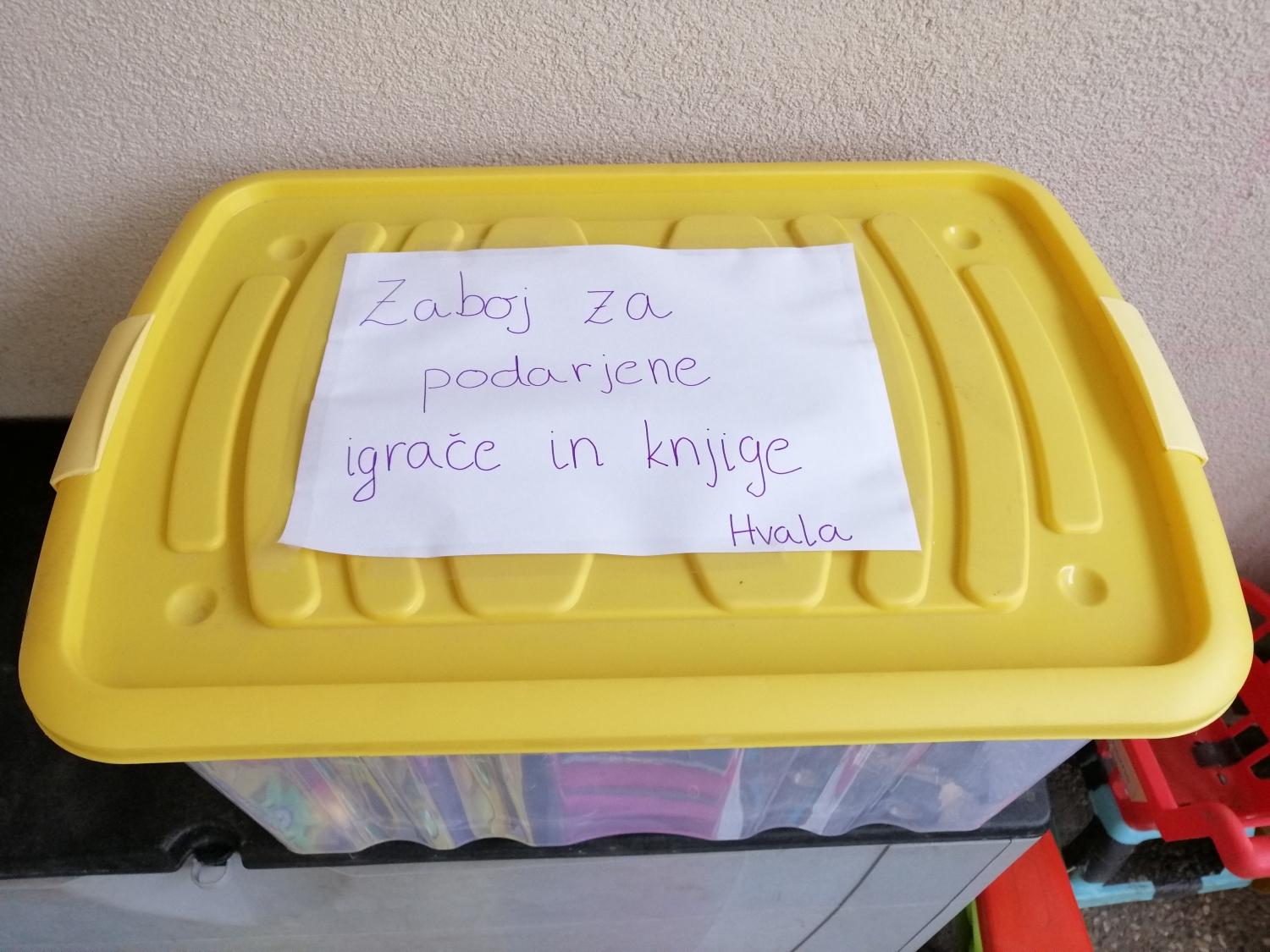 Igrače in knjige, ki naj bodo očiščene in pripravljene za prodajo, lahko oddate vsak dan, med 25. 11 in 29. 11. 2019 v ta zabojnik, ki stoji pred Hišo otrok Mali koraki v Mežici (Trg svobode 15). V kolikor ne morete sami dostaviti darovanih igrač ali knjig, lahko pokličite tudi na telefonsko številko 041-889-285 (Jana) in 031-239-806 (Nina), kjer se boste dogovorili za prevzem.