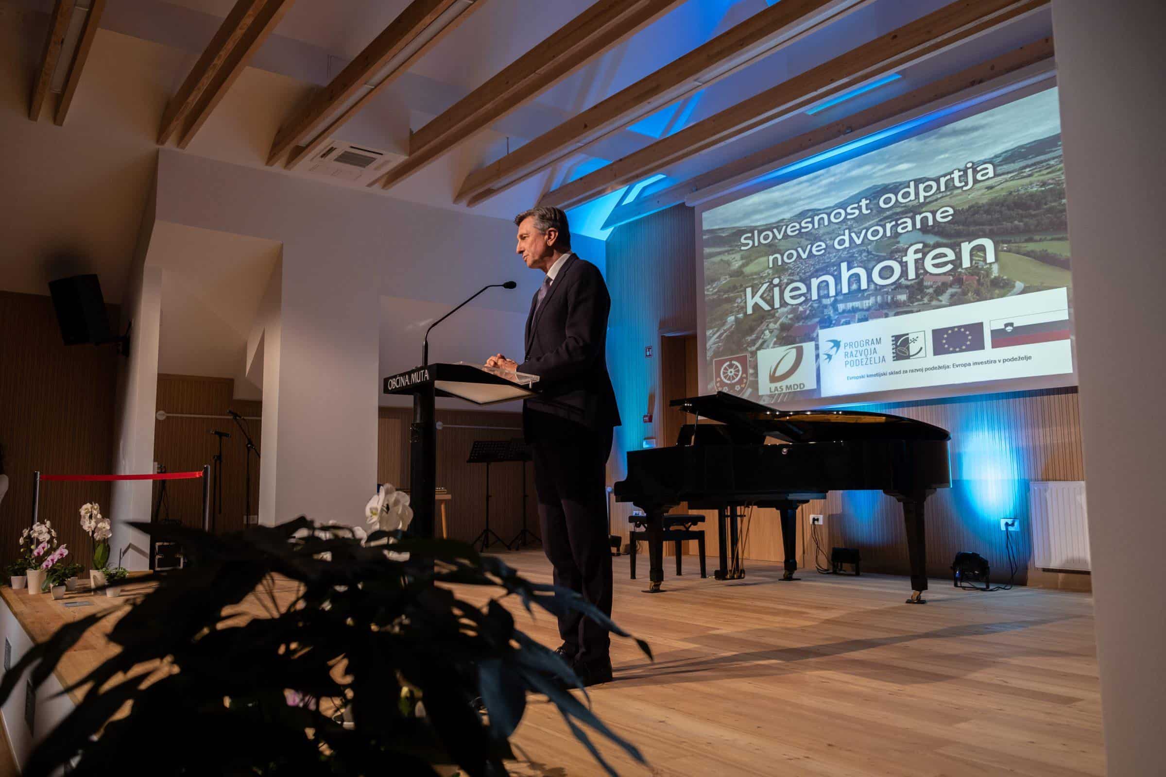 V nagovoru je izrazil veselje, da se občine povsod po Sloveniji, tako v urbanih središčih kot predvsem na podeželju, tako lepo razvijajo, ljudje pa živijo kakovostno življenje. »V desetih letih sem videl mnogo pridobitev, ta dvorana pa je posebna. V graščini, stari pol tisočletja, ste uredili nov kulturni hram in upam, da bo sijajno služil svojemu namenu,« je občankam in občanom zaželel predsednik Pahor in poudaril pomembno delo lokalne skupnosti in društev, ki skupaj z ljudmi gradijo skupnost.