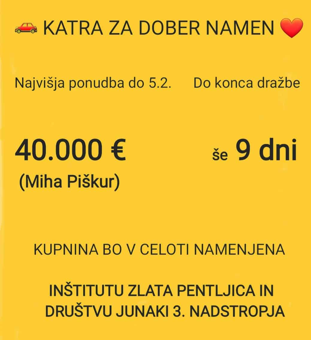 Katra za dober namen je na dražbi dosegla že vrtoglavih 40.000 evrov, dražba pa bo trajala še 9 dni.