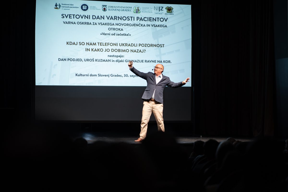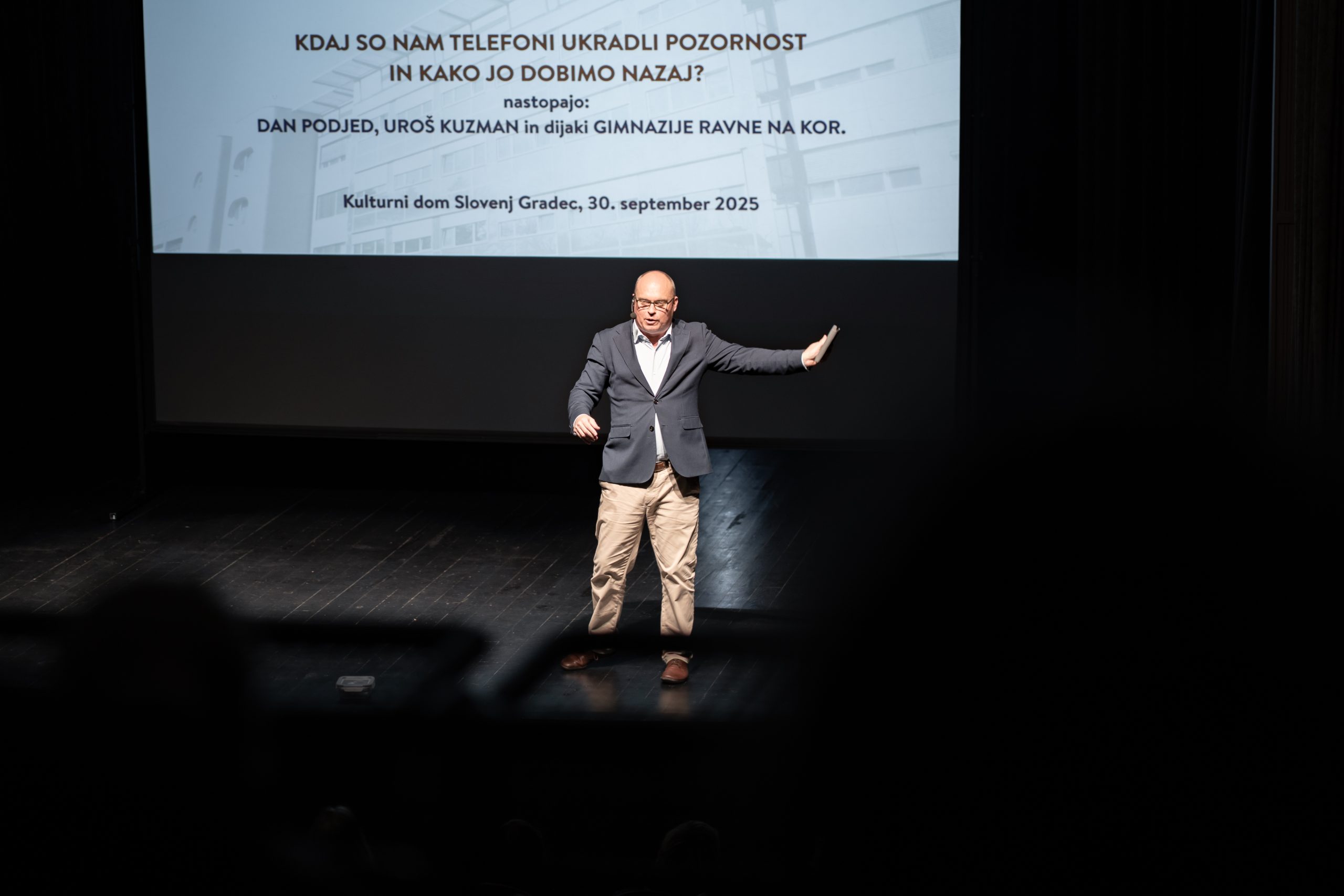 V Kulturnem domu Slovenj Gradec so se včeraj ob 18. uri zbrali na posebnem dogodku, ki je združil znanost, humor in pogled mladih, vse z namenom, da bi skupaj premislili o vlogi pametnih telefonov v našem vsakdanu.