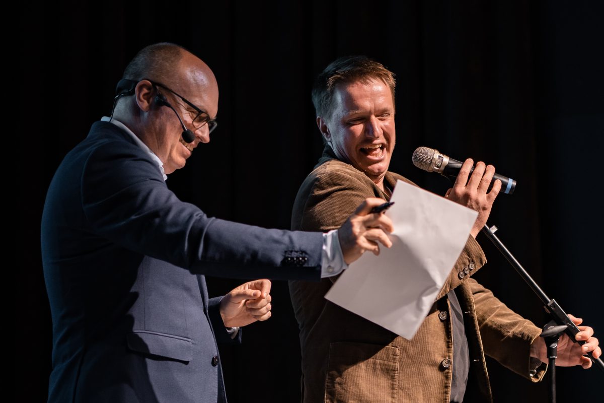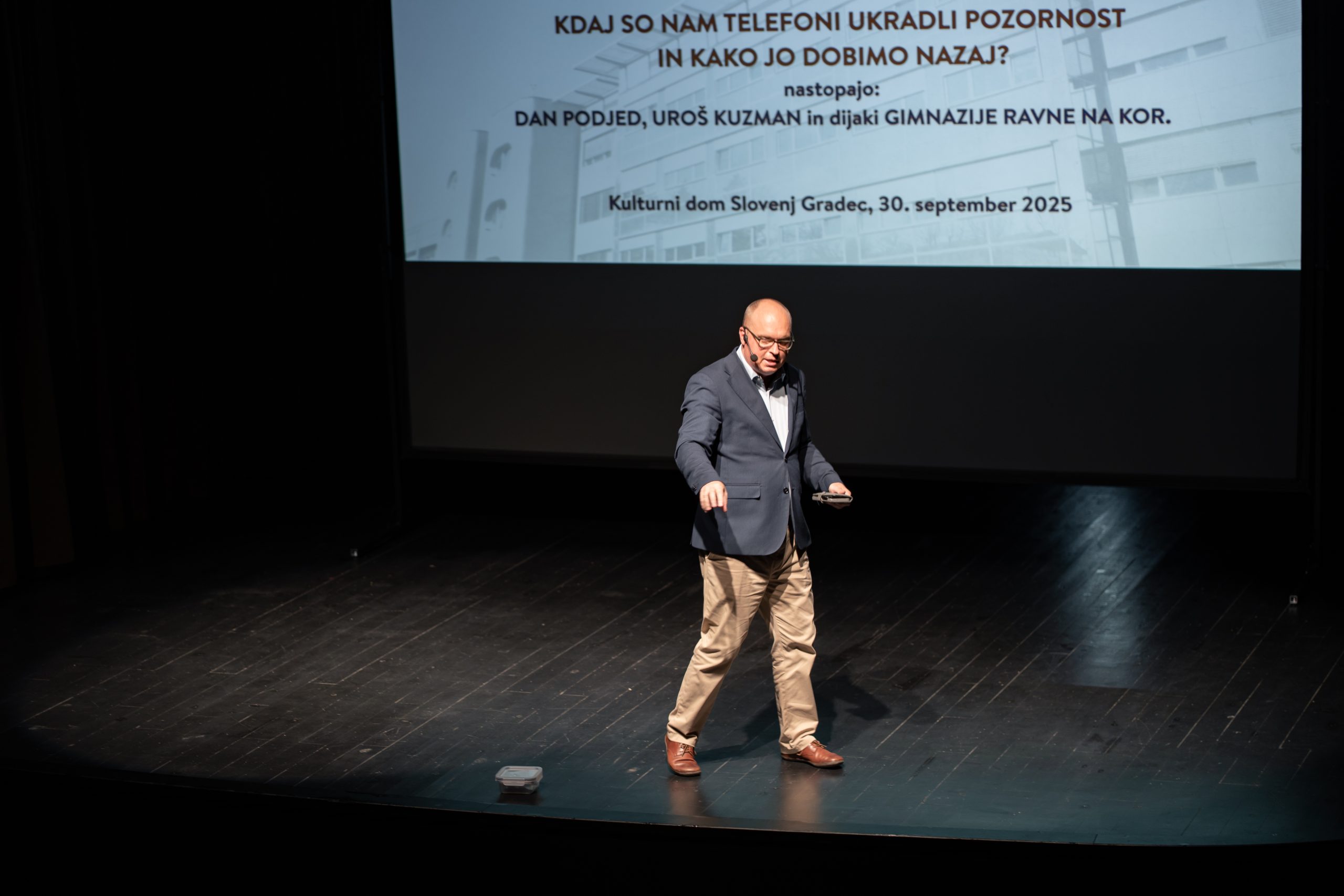 Na odru so se zvrstili trije sogovorniki iz različnih okolij: antropolog Dan Podjed, ki že vrsto let raziskuje sodobno družbo, Uroš Kuzman, stand-up komik in profesor matematike, ter dijaki Gimnazije Ravne na Koroškem, ki so z občinstvom delili razmišljanja svoje generacije. Razprava je obiskovacem ponujala znanstveni vidik, humoristične vložke in iskrene poglede mladih, ki z digitalnimi napravami odraščajo in jih doživljajo kot nekaj samoumevnega.