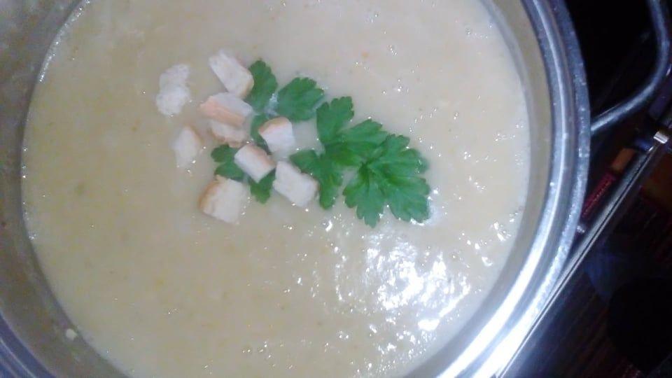 »Na žlički masti sem prepražila čebulo in nato na njej še na kocke narezan pastinak. Malo pred koncem praženja sem dodala olupljeno jabolko in stisnjen strok česna. Zalila sem z vodo, dodala vse ostale začimbe in kuhala skoraj pol ure. S paličnim mešalnikom sem naredila juho kremasto. Okrasila sem jo z vejico peteršilja, na mizo pa dodala še kruhove kocke in zlate kroglice, za sladokusce pa tudi kislo smetano.«