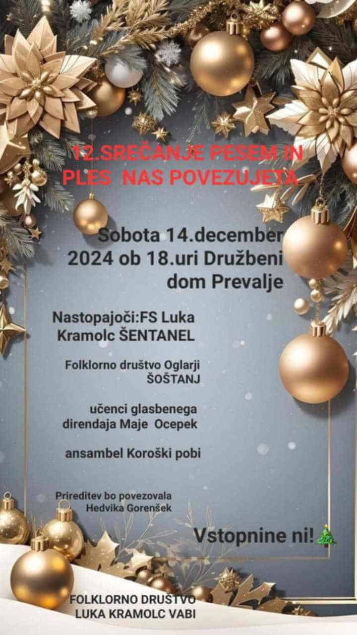 V organizaciji Folklorne skupine Luka Kramolc Šentanel bo v soboto, 14. decembra 2024, potekala tradicionalna, že 12. folklorna priredite Pesem in ples nas povezujta. Organizatorji so tudi letos za obiskovalce pripravili pester kulturno in glasbeno obarvan program.