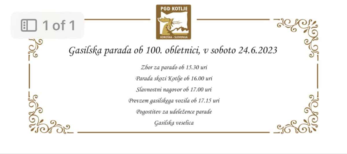 Danes, 24. junija 2023 bo ob16. uri, potekala v Kotljah velika gasilska parada in to v čast 100. letnici PGD Kotlje.