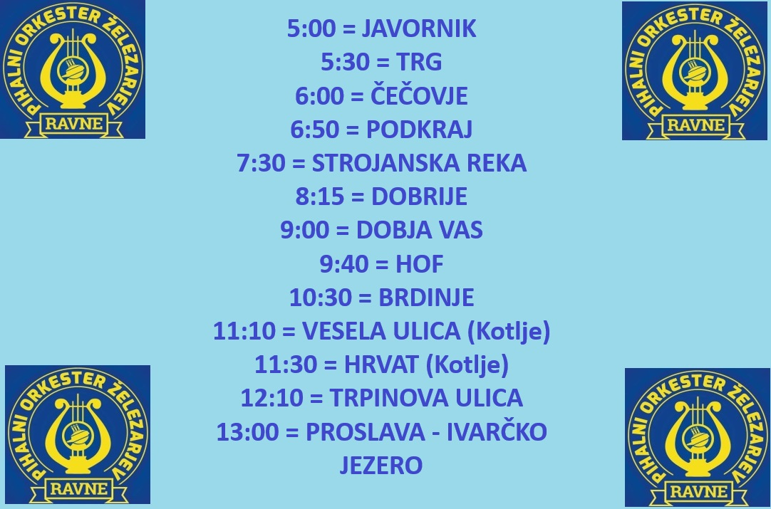 Prav tako so na BUDNICO 2025 pripravljeni tudi v Pihalnem orkestru železarjev Ravne, ki vam pošiljajo razpored, da jim boste lahko pomahali skozi okno ali jih pričakali in pozdravili.