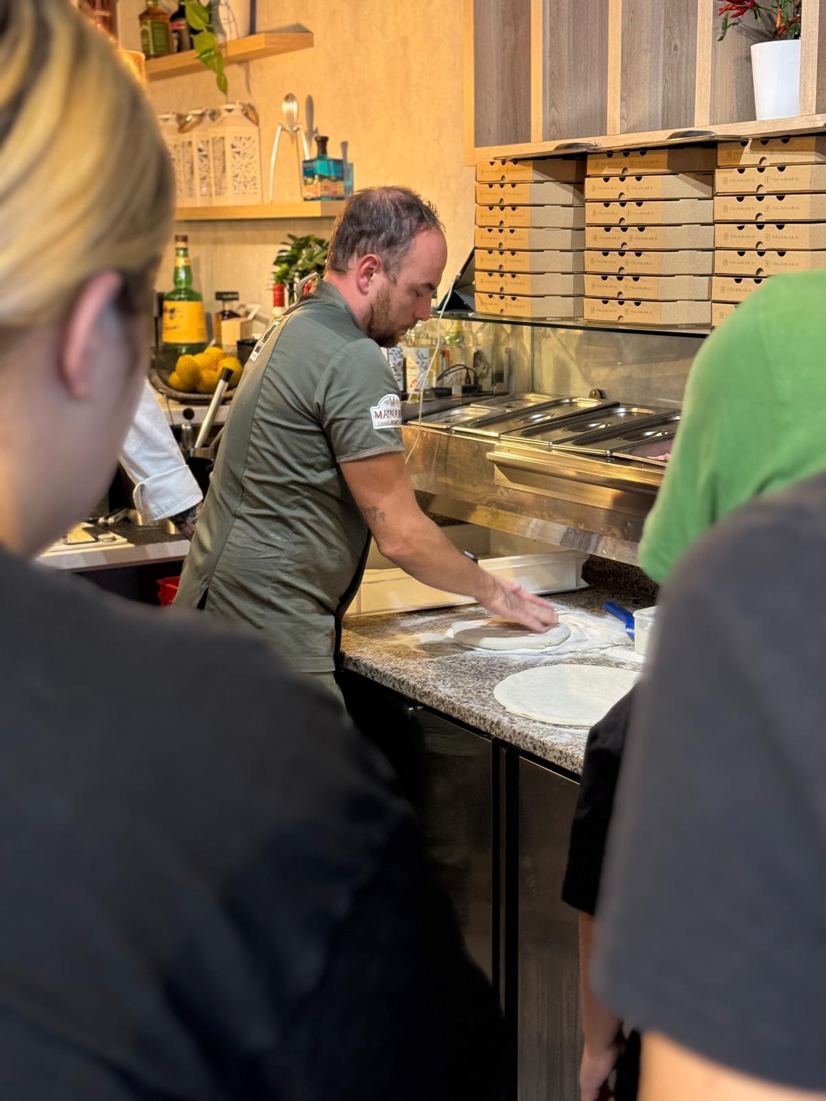 Že na samem začetku Akademije smo začutili, da tukaj pica ni nekaj “na hitro”. Jan Butolen, obraz Italian Laba, ki ga ni treba posebej predstavljati, saj ga Korošci dobro poznamo, nas je popeljal skozi celoten proces nastanka prave napolitanske pice, za katero je značilno: