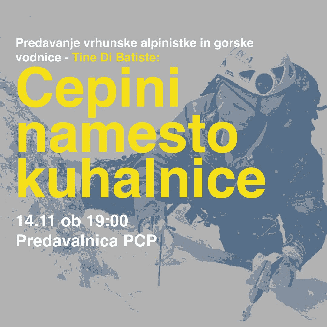 November bo v centru postregel z izjemnimi dogodki, prvi med njimi pa bo alpinistično predavanje z naslovom Cepini namesto kuhalnice. Ta četrtek, 14. novembra 2024, ob 19:00 vas vabijo, da se pridružite v predavalnici PCP in se prepustite navdihujočim zgodbam ene najboljših slovenskih alpinistk - Tine Di Batista.