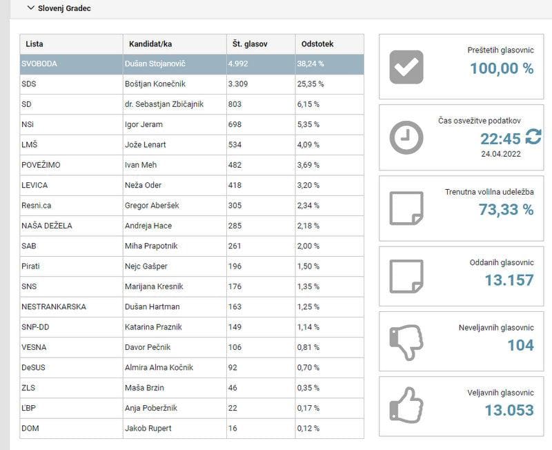 "Z udeležbo smo pokazali, da si želimo sprememb. Zavihajmo rokave in naj bodo spremembe – na bolje. Iskrena hvala za vso podporo," je danes ob objavljenih vzporednih rezultatih na FB profilu zapisal Stojanovič. Zahvaljuje se vsem, ki so ga prepoznali kot primernega kandidata, tudi vsem članicam in članom volilnih odborov, ki so marljivo šteli glasovnice in pazili na korektnost poteka glasovanja.