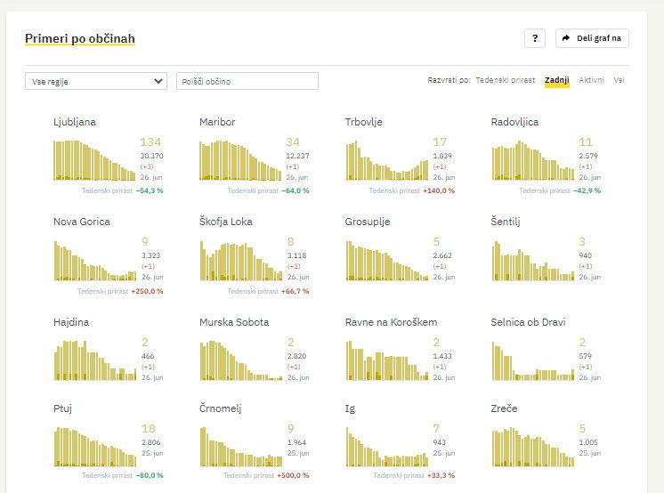 V soboto so sicer po podatkih sledilnika za covid-19 opravili tudi 13.027 hitrih testov. Vse pozitivne rezultate hitrih testov potrjujejo s PCR testiranjem. Kot rečeno, so po podatkih vlade s PCR testi potrdili 19 novih okužb, po podatkih sledilnika za Covid-19 pa 14, in sicer v dvanajstih različnih občinah.