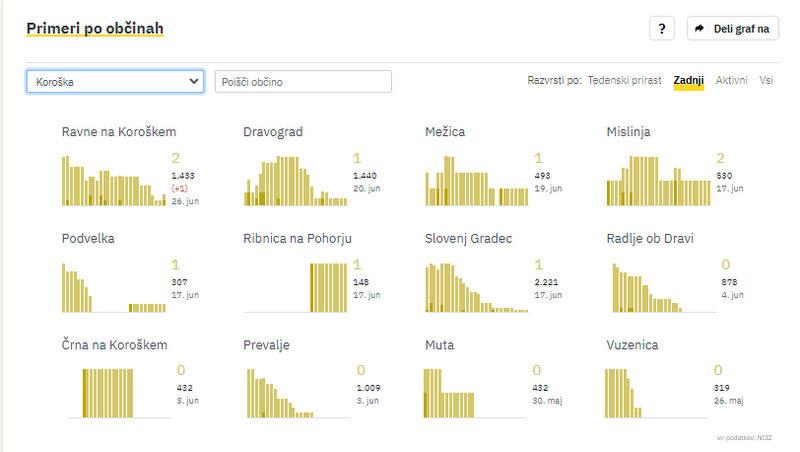 Na Koroškem so v zadnjih sedmih dneh zabeležili 2 novi okužbi s koronavirusom. Nazadnje so novo okužbo potrdili včeraj na Ravnah, kažejo podatki sledilnika. Sedemdnevno povprečje v regiji znaša 0.28.