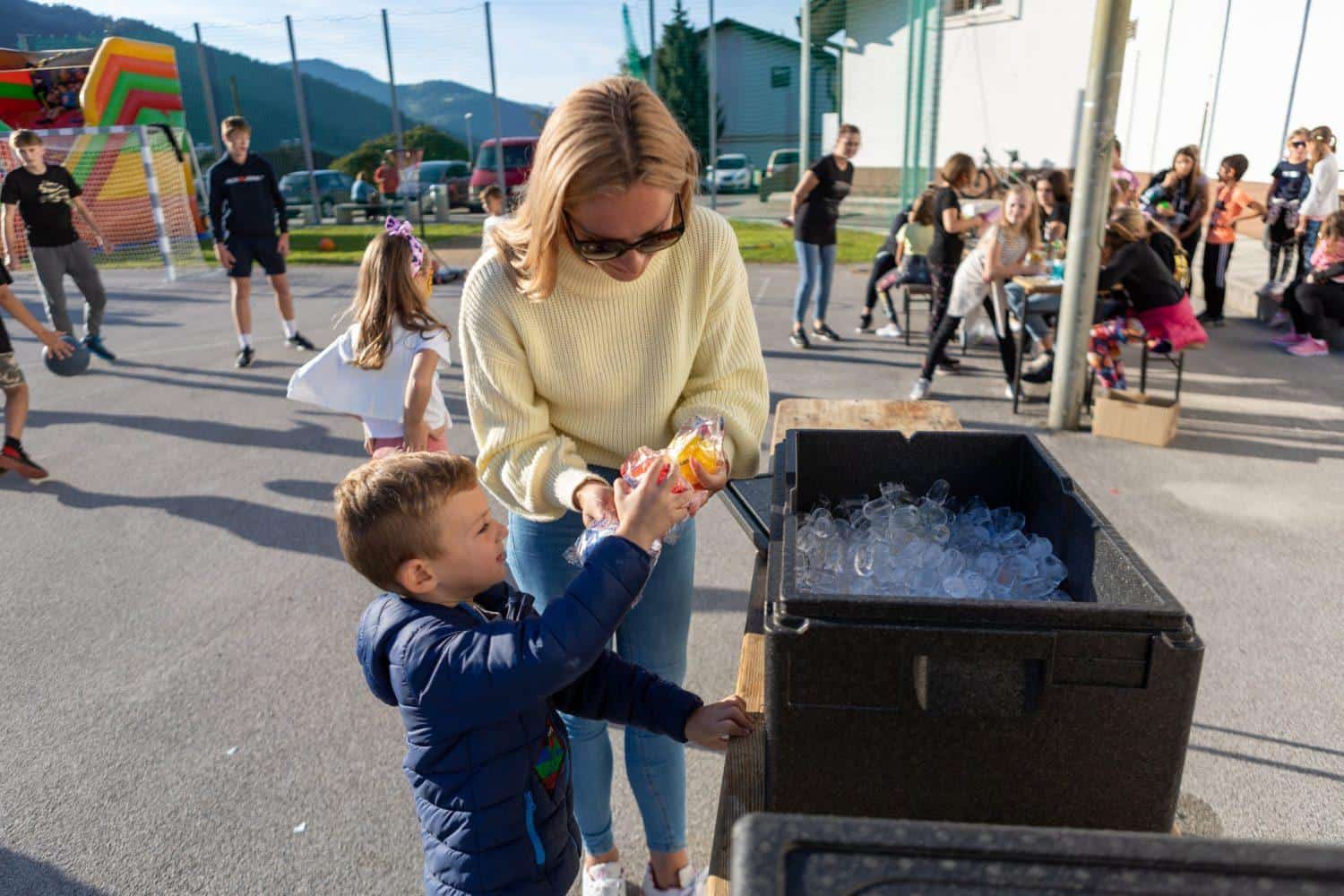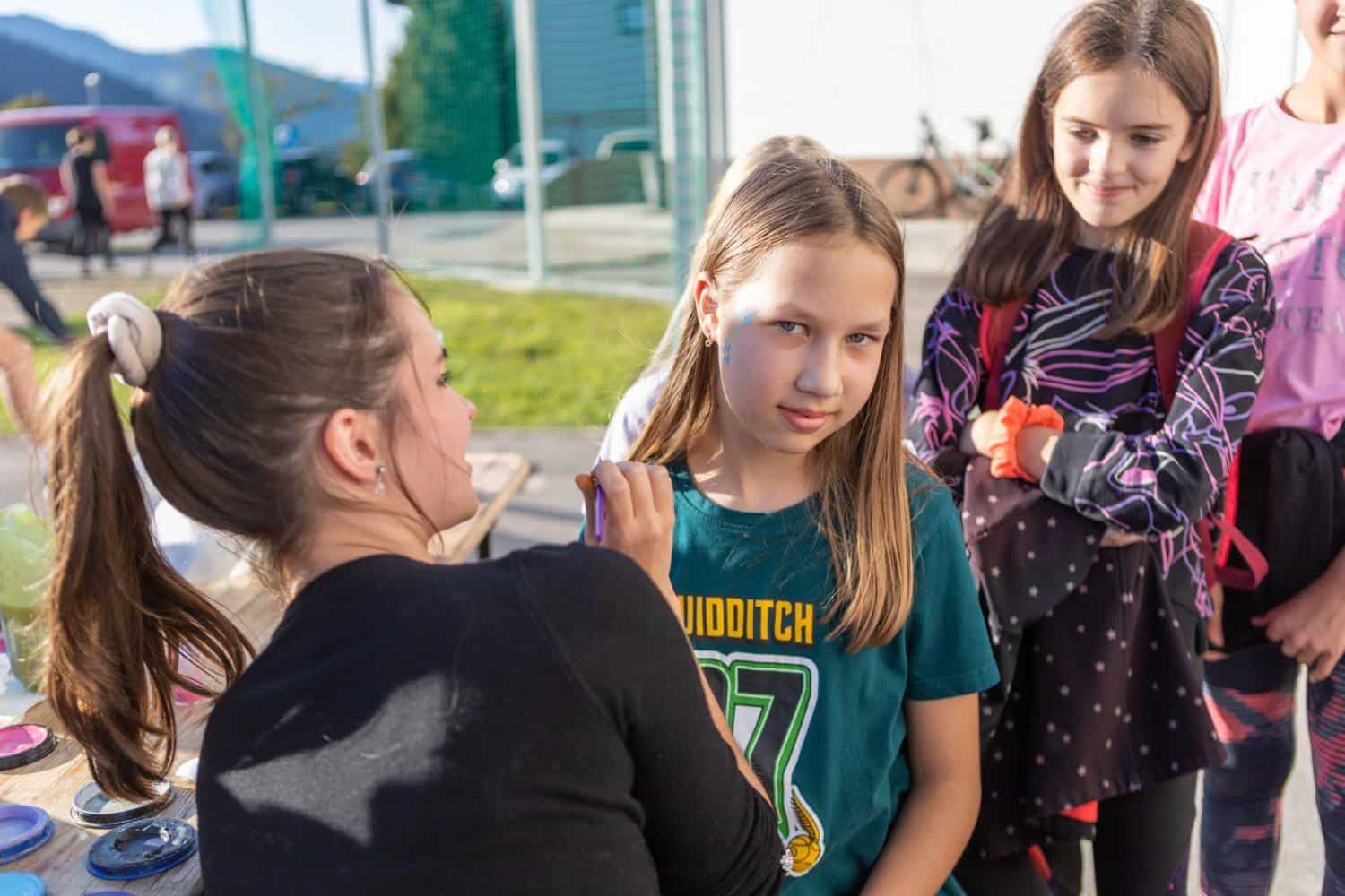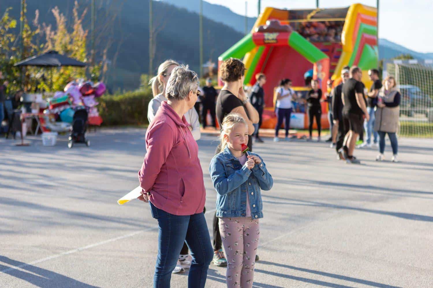 Danes se je srečanje odvijalo v Pamečah, kjer so se v sončnem vremenu zabavali ob otroški predstavi, igrali na napihljivih igralih, risali, igrali košarko in uživali v poslikavi obraza.