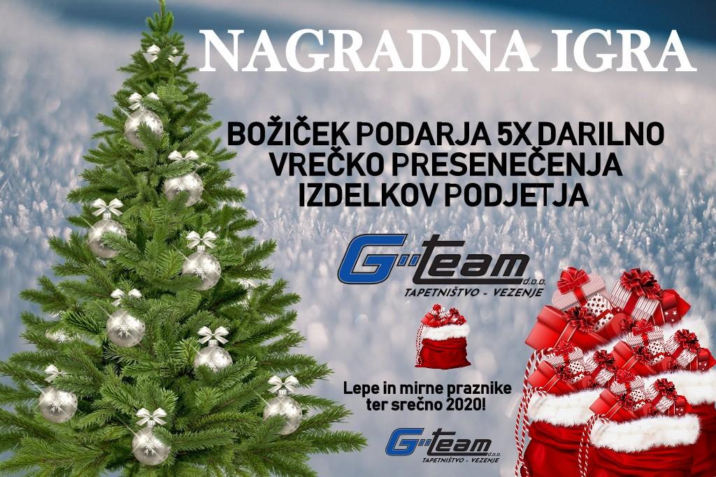 Ker pa je ravno čas obdarovanj, vam v sodelovanju s podjetjem G-team podarjamo 5 vreč presenečanja, v katerih so že pripravljeni njihovi izdelki za tople zimske dni. Če si jih želite tudi vi, obiščite našo Facebook stran in sodelujte. Morda boste z malo sreče ravno vi tisti, ki boste 24. decembra prejeli njihovo božično darilo.