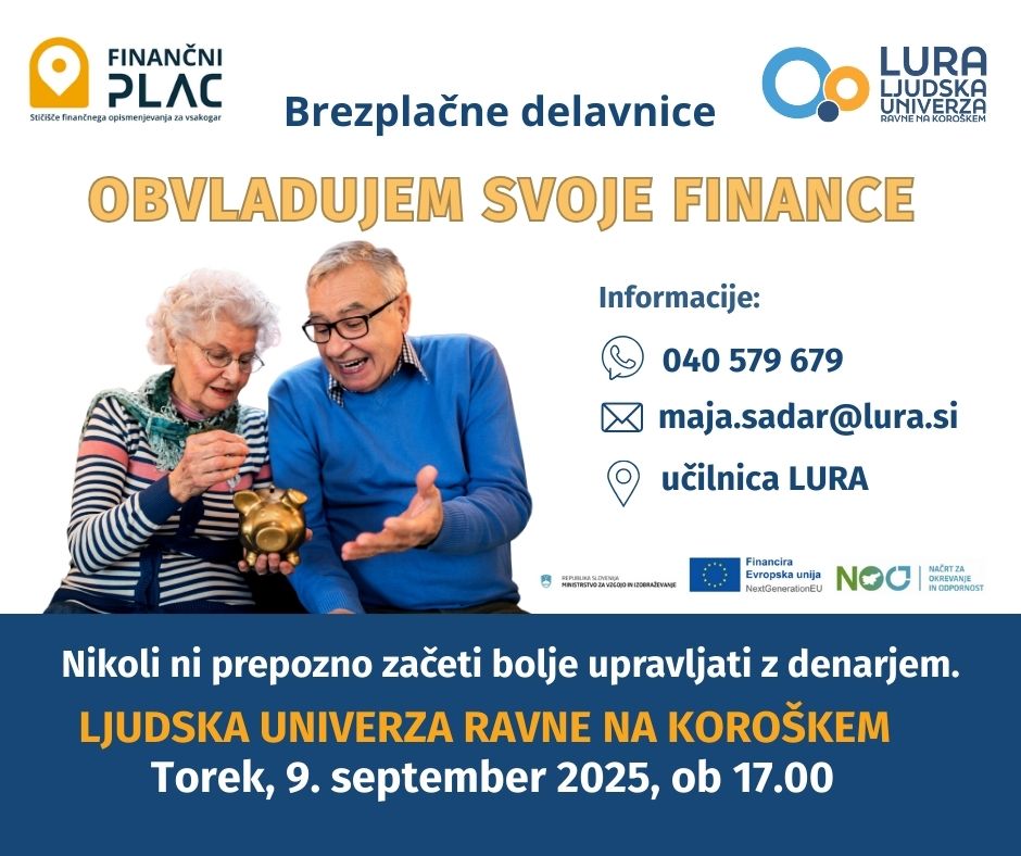 Začetek programa Obvladujem svoje finance bo v torek, 9. septembra 2025, ob 17. uri, v učilnici LURA, Ljudska univerza Ravne na Koroškem (Čečovje 12a, Ravne na Koroškem). V program se lahko prijavite preko elektronske prijavnice.