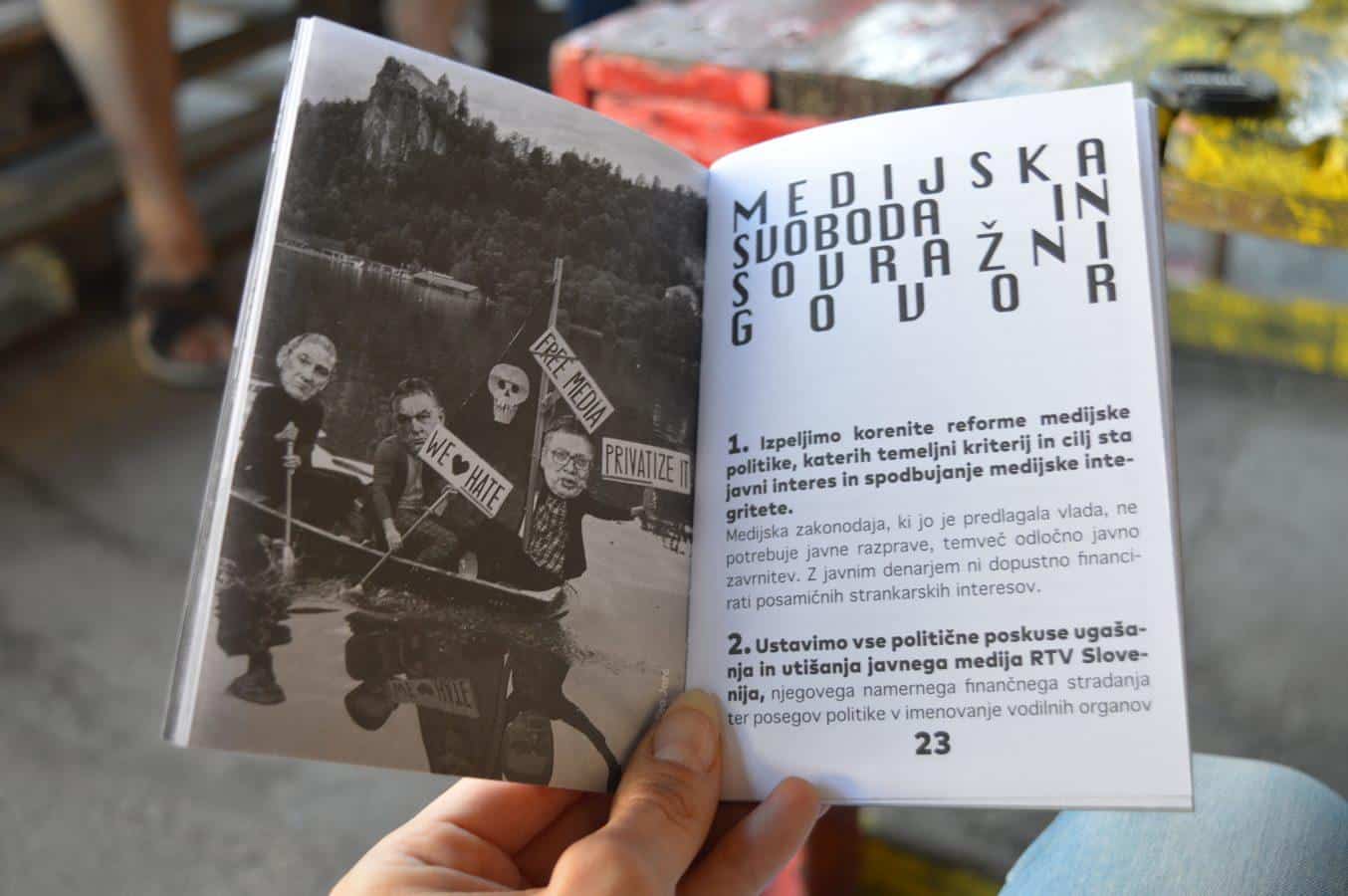 Izvemo, da so tudi v sklopu tokratne akcije, ki je pretresala novelo zakona za pitno vodo, realizirali ustvarjalne delavnice in diskusijo. V sklopu delavnic so obiskovalci vizualizirali svoje misli in prepričanja o pomenu vode ter ji pisali pisma, tekom pogovora pa so o novih uvedbah, ki jih prinaša novela, razmišljali skupaj s povabljenimi gosti: Barbara Pur, Mladi Forum Koroška, Milan Mrđenović, Levica, Gorazd Knific, Pirati ter Ratko Stojiljković, predstavnik izbrisanih.