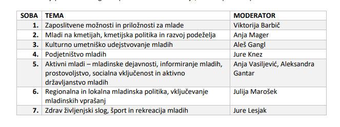 ne oglašujejo dobro, da bi dosegli svojo ciljno publiko – mlade (soba 5); - na Koroškem je nekaj občin s certifikatom »mladim prijazna občina«, a certifikat sam po sebi