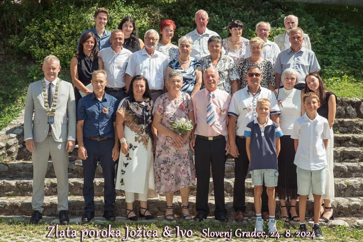 "Ivan, ki ga sorodniki, prijatelji in znanci že več kot trideset let poznajo kot Ivo, je ljubezen svojega življenja spoznal pri 23 letih v nekdanji gostilni Kovač v Suhem Dolu. Jožica, takrat 19-letno dekle iz Pameč, je prišla na rojstnodnevno zabavo svoje prijateljice in z nje odšla v objemu mladeniča, s katerim sta se leto kasneje poročila v njegovem rodnem kraju, v Mislinji. Po petdesetih letih sta še vedno v objemu drug drugega," je na družbenem omrežju zapisal slovenjgraški župan Tilen Klugler, ki je vodil obred.