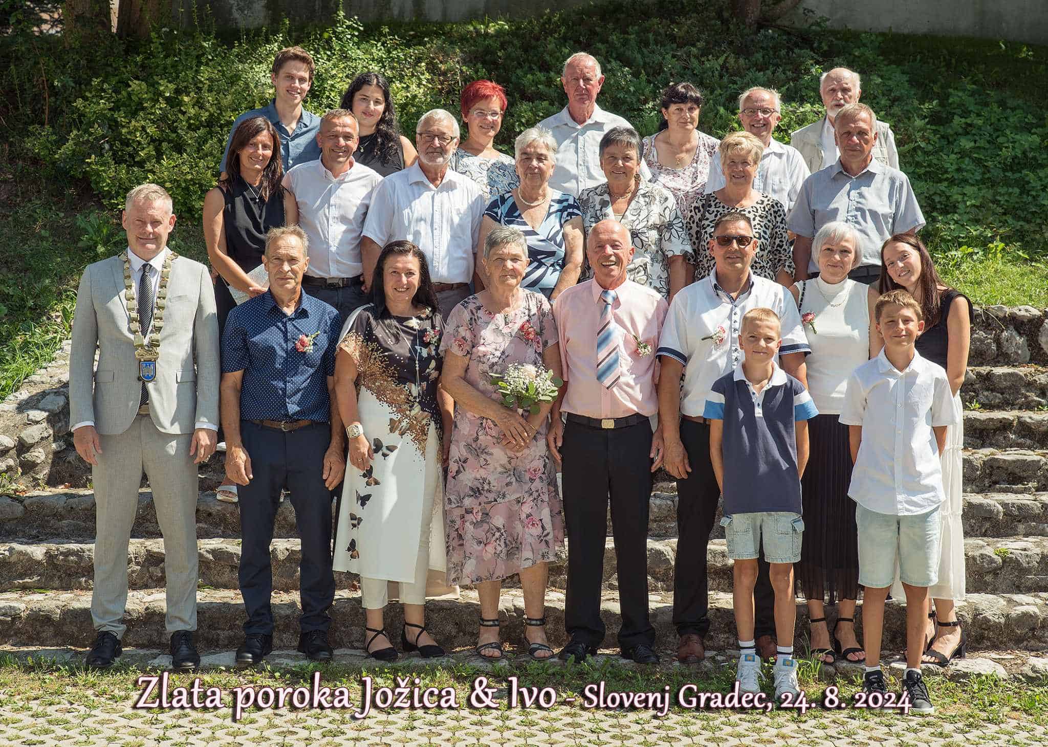 "Ivan, ki ga sorodniki, prijatelji in znanci že več kot trideset let poznajo kot Ivo, je ljubezen svojega življenja spoznal pri 23 letih v nekdanji gostilni Kovač v Suhem Dolu. Jožica, takrat 19-letno dekle iz Pameč, je prišla na rojstnodnevno zabavo svoje prijateljice in z nje odšla v objemu mladeniča, s katerim sta se leto kasneje poročila v njegovem rodnem kraju, v Mislinji. Po petdesetih letih sta še vedno v objemu drug drugega," je na družbenem omrežju zapisal slovenjgraški župan Tilen Klugler, ki je vodil obred.