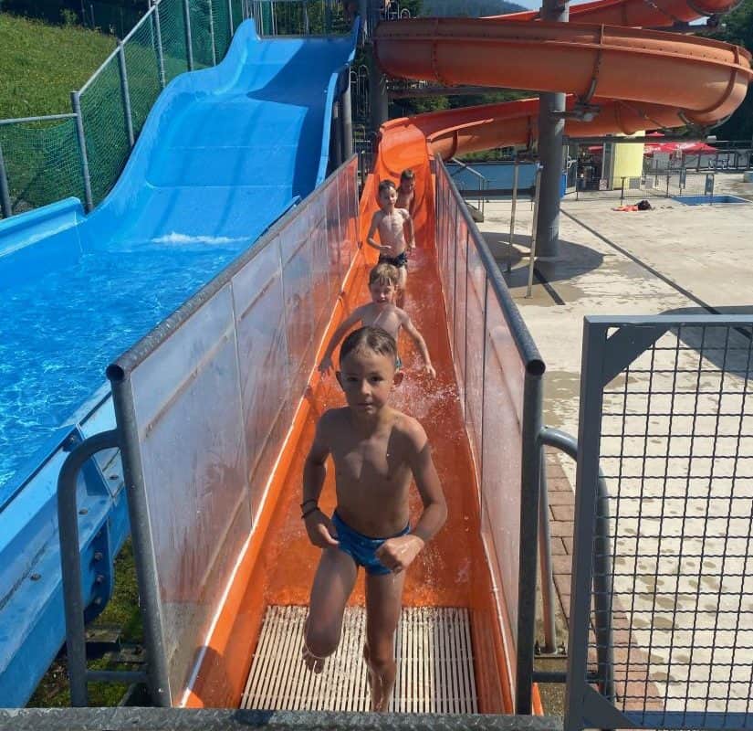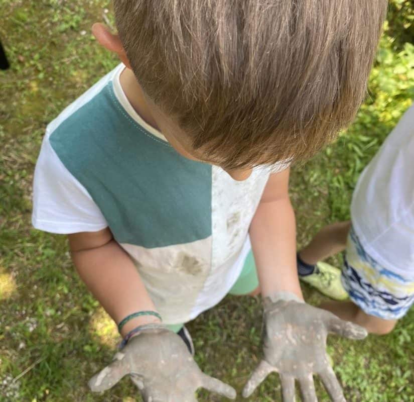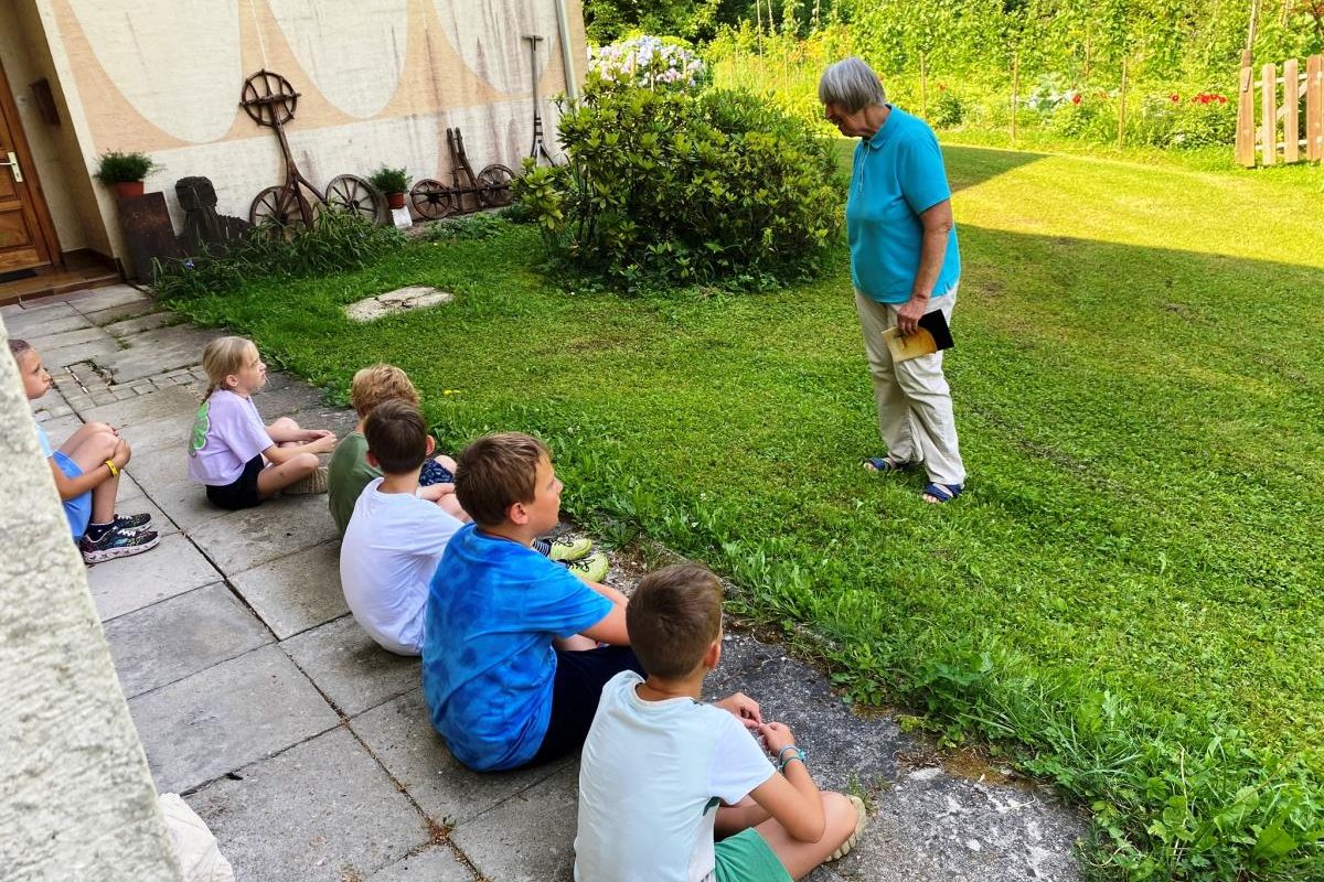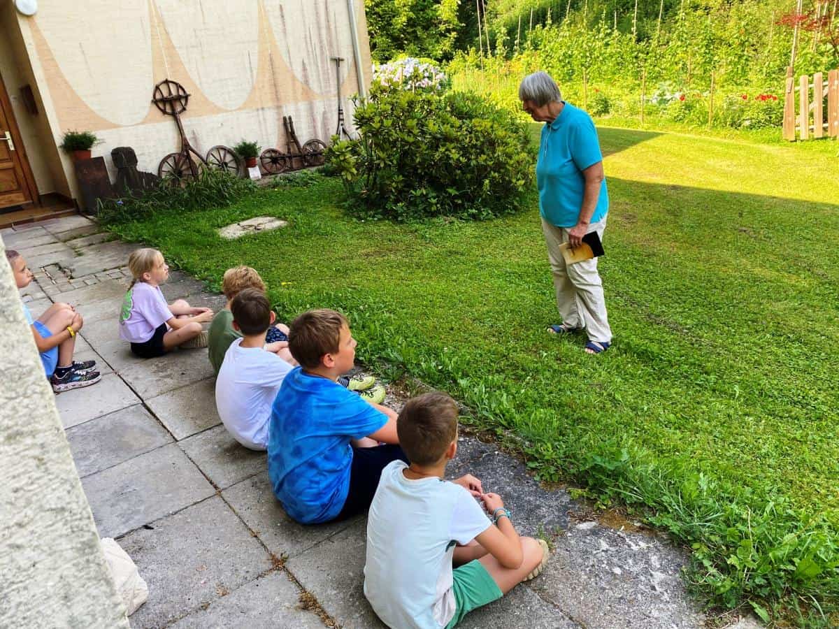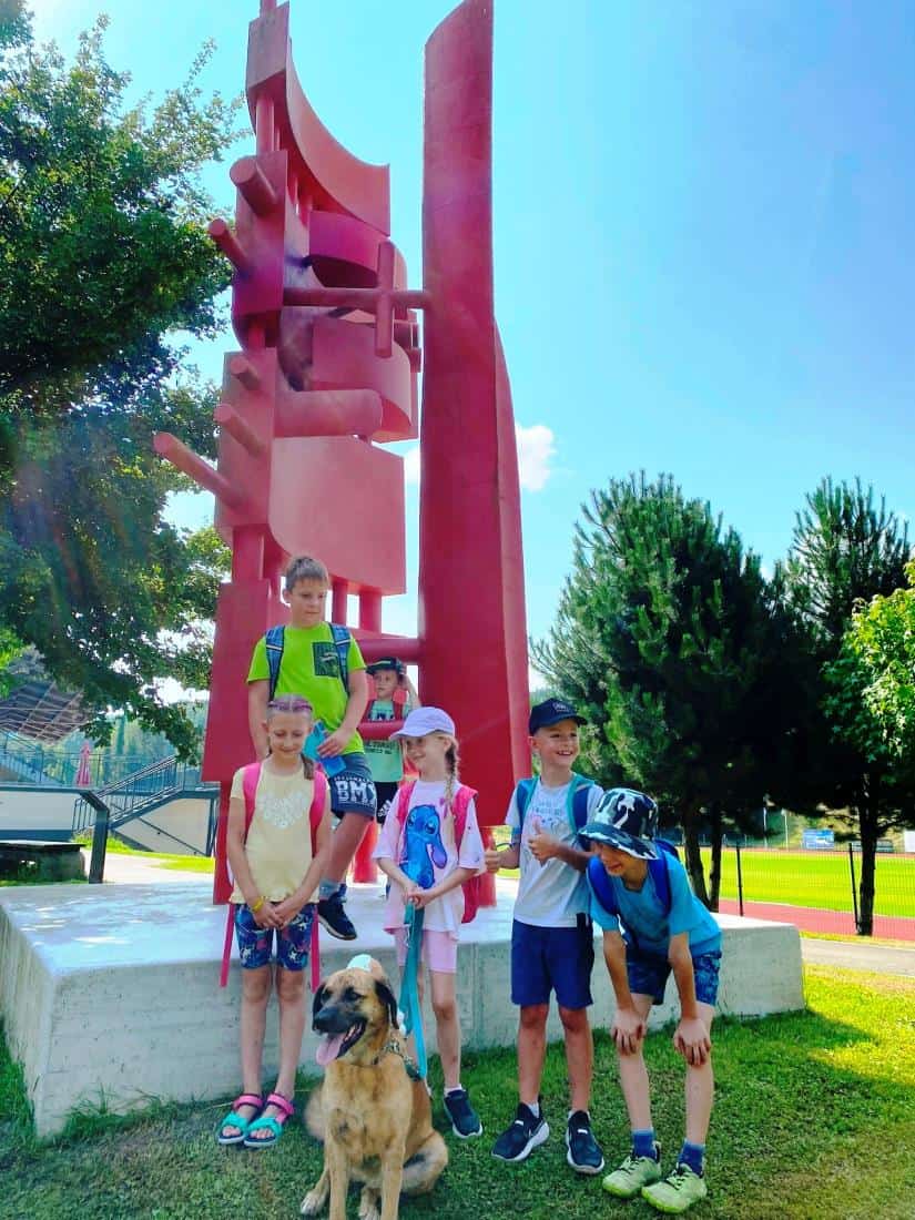 Tudi sreda je bila zelo zanimiva. Dan so jim obogatili zaposleni v Koroški galeriji likovnih umetnosti. Obiskali so galerijo Andreja Grošlja, kjer jim je njegova žena pokazala in povedala veliko o delu umetnika oziroma kiparja. Ustvarjali so z glino ter uživali v učilnici na prostem v Grajskem parku. Družili so se s predstavnicama Zdravstveno vzgojnega centra Zdravstvenega doma Ravne in risali nasmehe. Največji nasmeh pa je bil v petek, ko so se v res vročem tednu ohladili v letnem bazenu in zaključili drugi teden Razgibanega poletja.