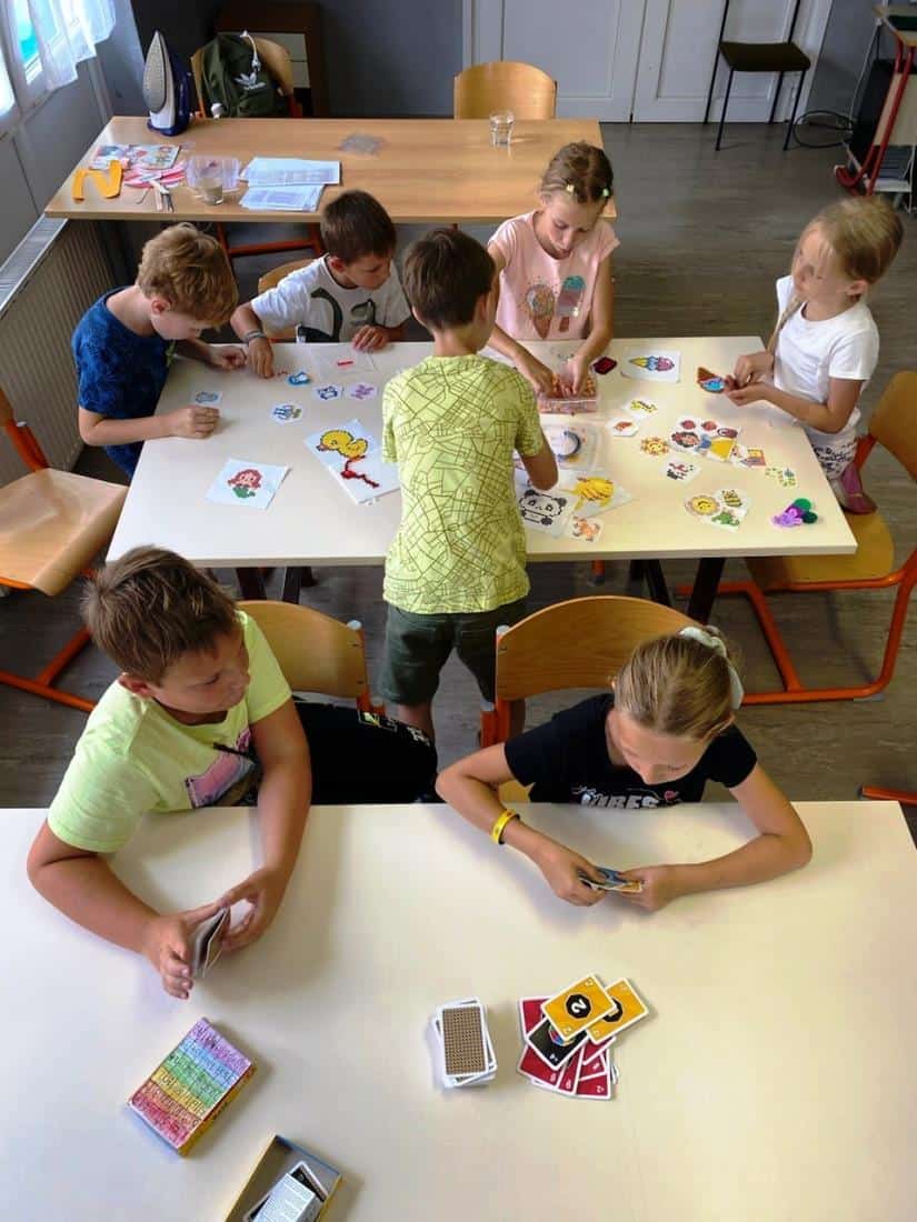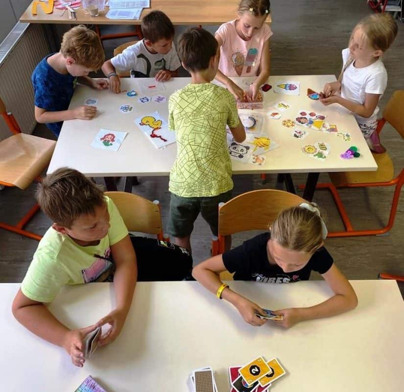 Nov začetek tedna se je pričel s spoznavanjem, saj se je v počitnikovanju zamenjalo nekaj otrok. Po zajtrku so v telovadnici najprej igrali igre z žogo, nato pa se odpravili v knjižnico OŠ Prežihovega Voranca, kjer so uživali v zanimivih delavnicah, ki jim jih je pripravila knjižničarka. Po odlični in zdravi malici so fantje igrali nogomet, dekleta pa so si vzela čas za klepet in počitek v vročem dopoldnevu. Temu je sledil sprehod nazaj do OŠ Juričevega Drejčka ter igranje namiznih iger in različnih ustvarjalnostih.