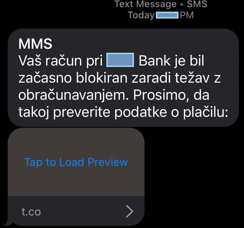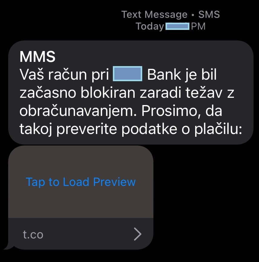 - prejeta SMS oz. MMS sporočila sicer dajejo vtis, kot da so bila poslana s strani banke, vendar banke takšnih sporočil ne pošiljajo